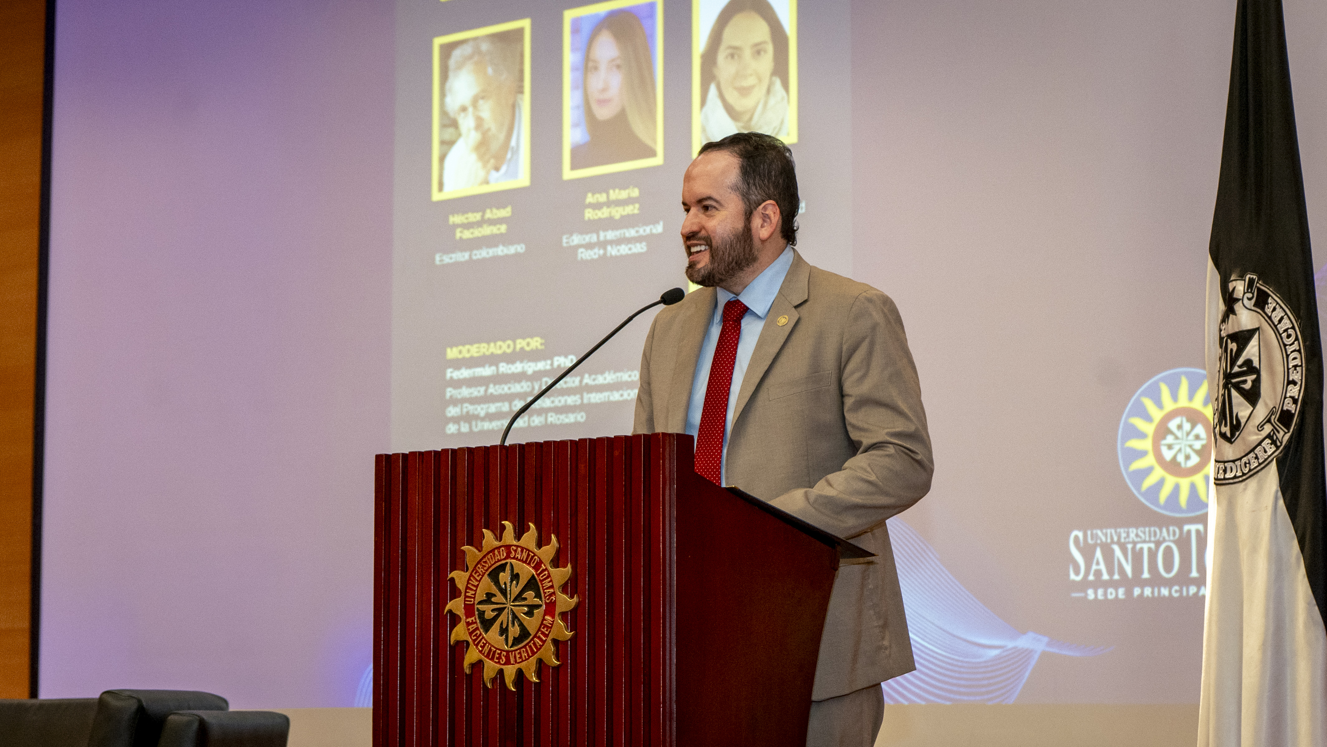 El evento fue inaugurado oficialmente por el rector de la Universidad de Santo Tomás, fray Álvaro José Arango Restrepo, y la embajadora de Finlandia en Colombia, Eija Rotinen, quien habló en nombre de los organizadores. El conversatorio reunió a un nutrido grupo de estudiantes y representantes del cuerpo diplomático, entre ellos el embajador de la UE en Colombia, François Roudié, así como representantes de la comunidad ucraniana residente en Colombia, entre ellos el presidente de la asociación PROSVITA. El debate abordó temas como el significado de la guerra en Ucrania para los colombianos, la reconfiguración del orden internacional y el futuro y las posibilidades de poner fin a la guerra. Héctor Abad Faciolince y Ana María Rodríguez también compartieron sus propias experiencias en Ucrania durante los últimos años, durante el conflicto. Los panelistas condenaron los ataques masivos y sistemáticos de Rusia contra la población y la infraestructura civil ucranianas. El evento generó gran interés entre el público asistente y se transmitió en vivo por las redes sociales de la Universidad de Santo Tomás.