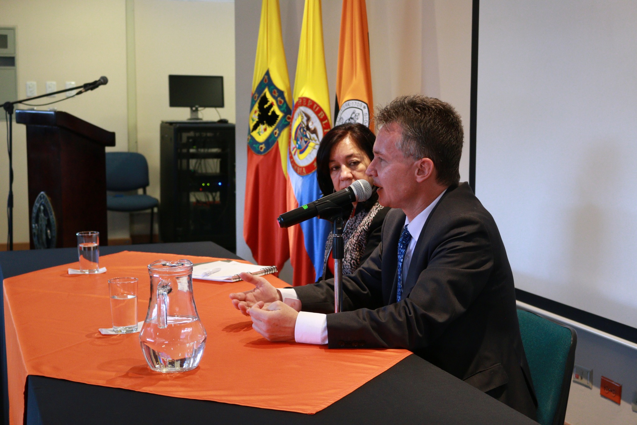 Antes de la conferencia tuvo lugar un encuentro entre el embajador y las directivas universitarias, entre quienes se encontraban el padre rector Nelson Pérez Cano y la señora Nohelia Hewitt Ramírez, vicerrectora académica, durante el cual se habló sobre las perspectivas de cooperación entre la Universidad de San Buenaventura y la Embajada de Polonia y las universidades polacas.