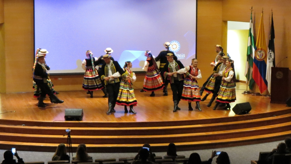 El evento se abrió con las palabras de la directora de asuntos internacionales de la Universidad Santo Tomás, Lucía Toro Campos y de la Encargada de Negocios a.i. de la Embajada de Polonia en Colombia, la Sra. Regina Jurkowska, quien hizo énfasis en la importancia de la cultura y la tradición popular polaca en la construcción de las relaciones internacionales. En el Auditorio Mayor del Edificio Doctor Angélico de la Universidad, el Grupo de Danza Folclórica Promyki de Wieliszew, integrado por 21 personas, presentó un repertorio de danzas y canciones folclóricas polacas.