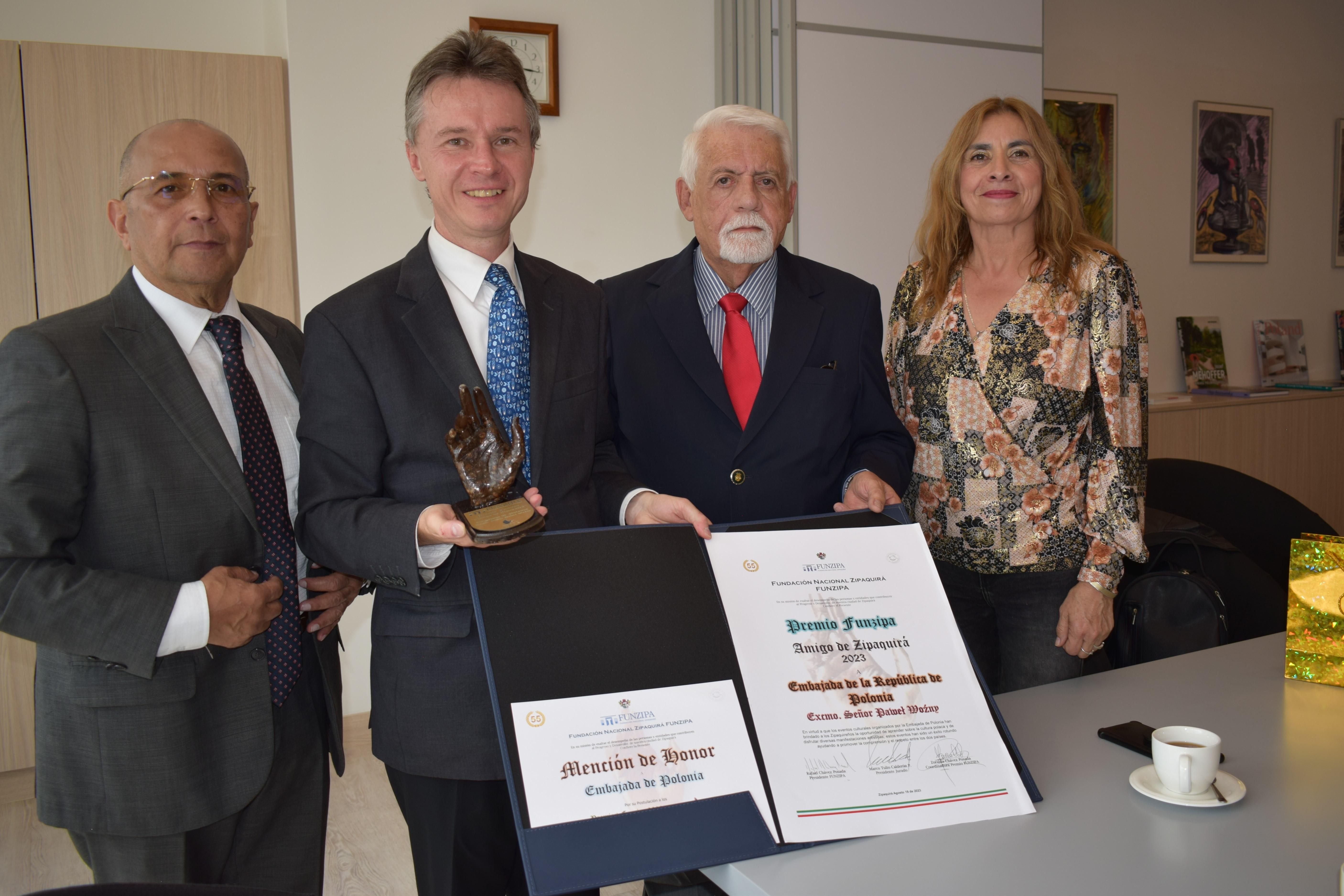 Entrega del Premio FUNZIPA en la categoría “Amigo de Zipaquirá” a la Embajada de Polonia