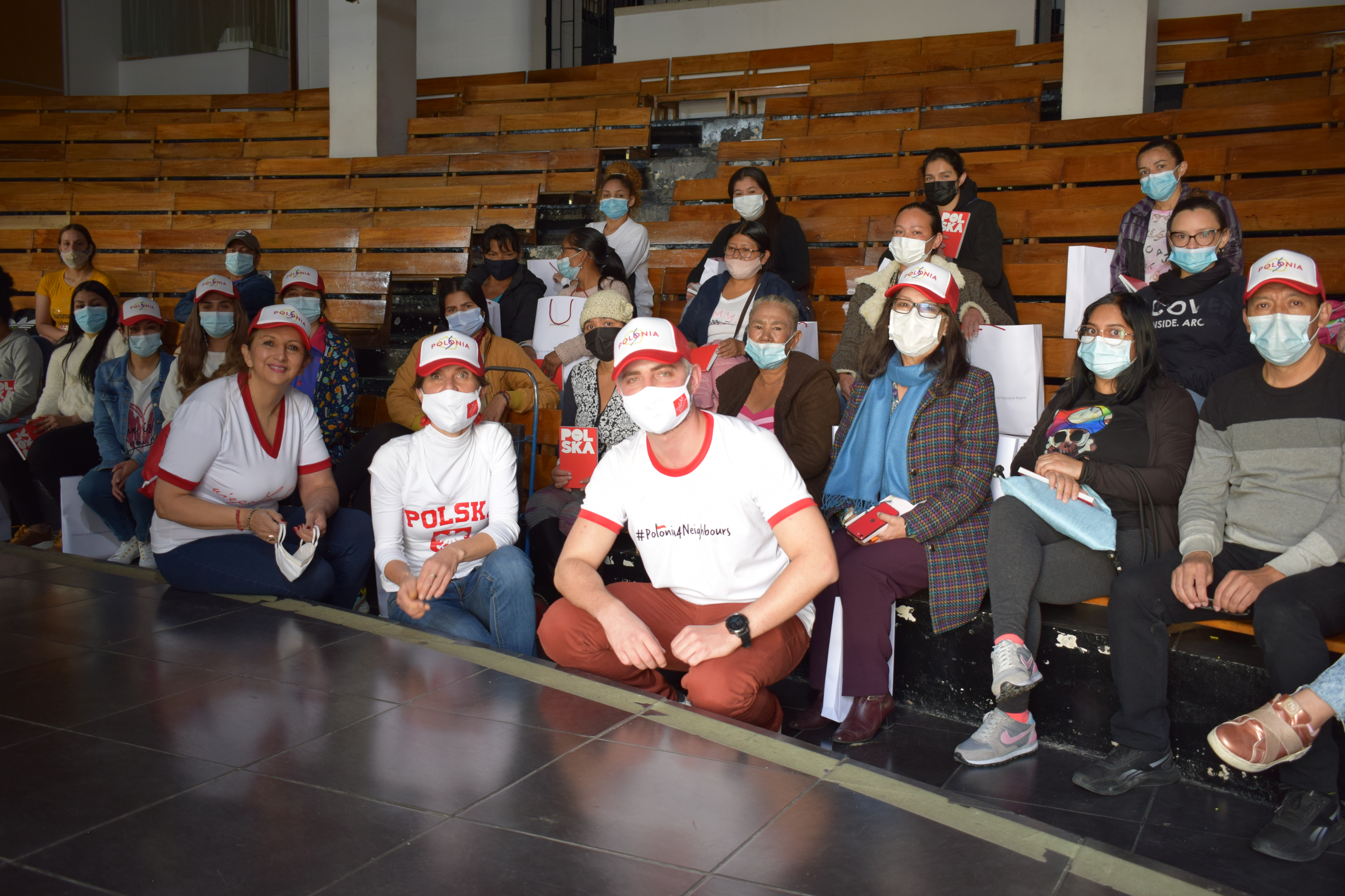 La Embajada de Polonia en Bogota en cabeza del Cónsul Oskar Grądziel y tres funcionarios más de la Embajada repartieron mercados básicos a 40 de estas familias - las más vulnerables.