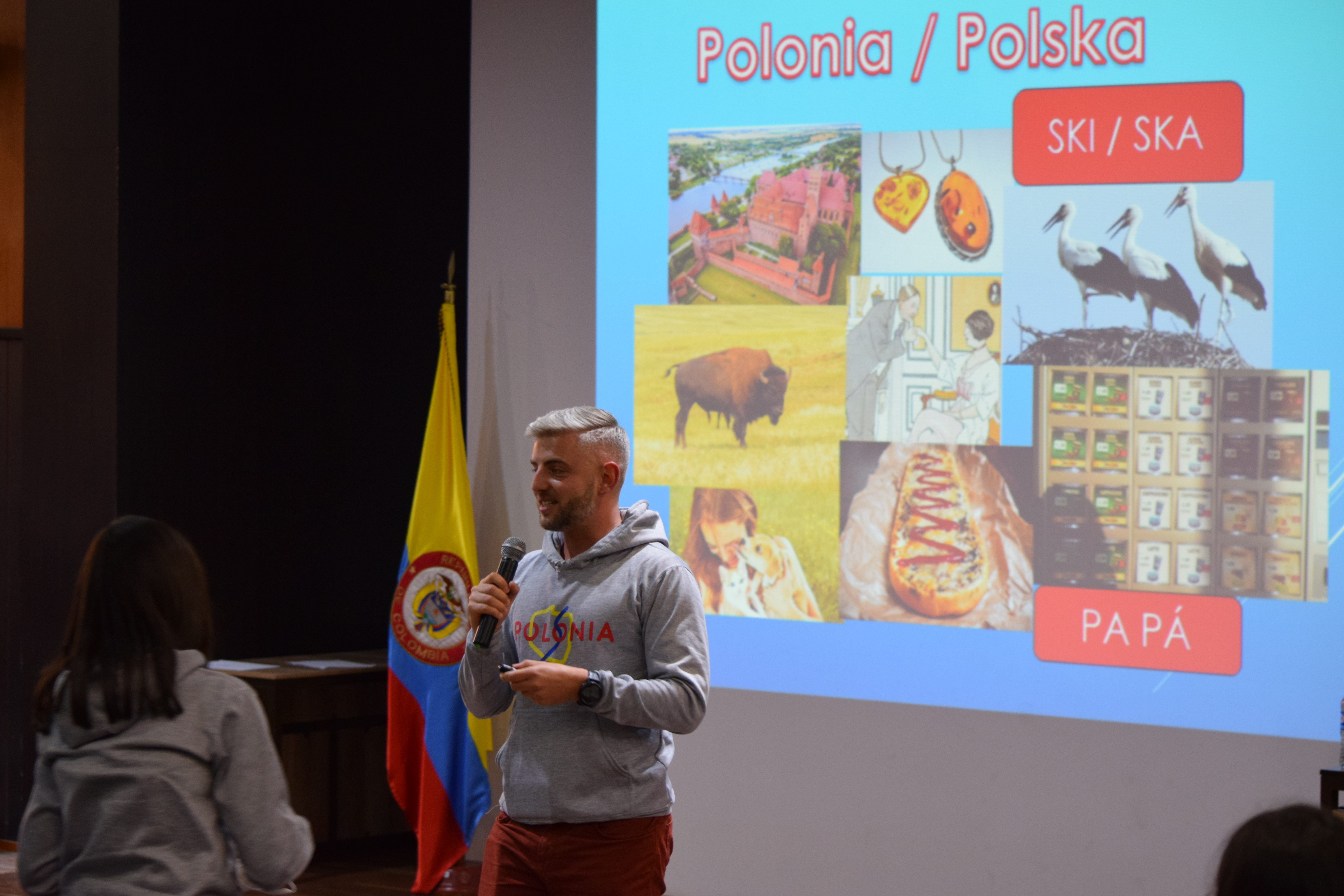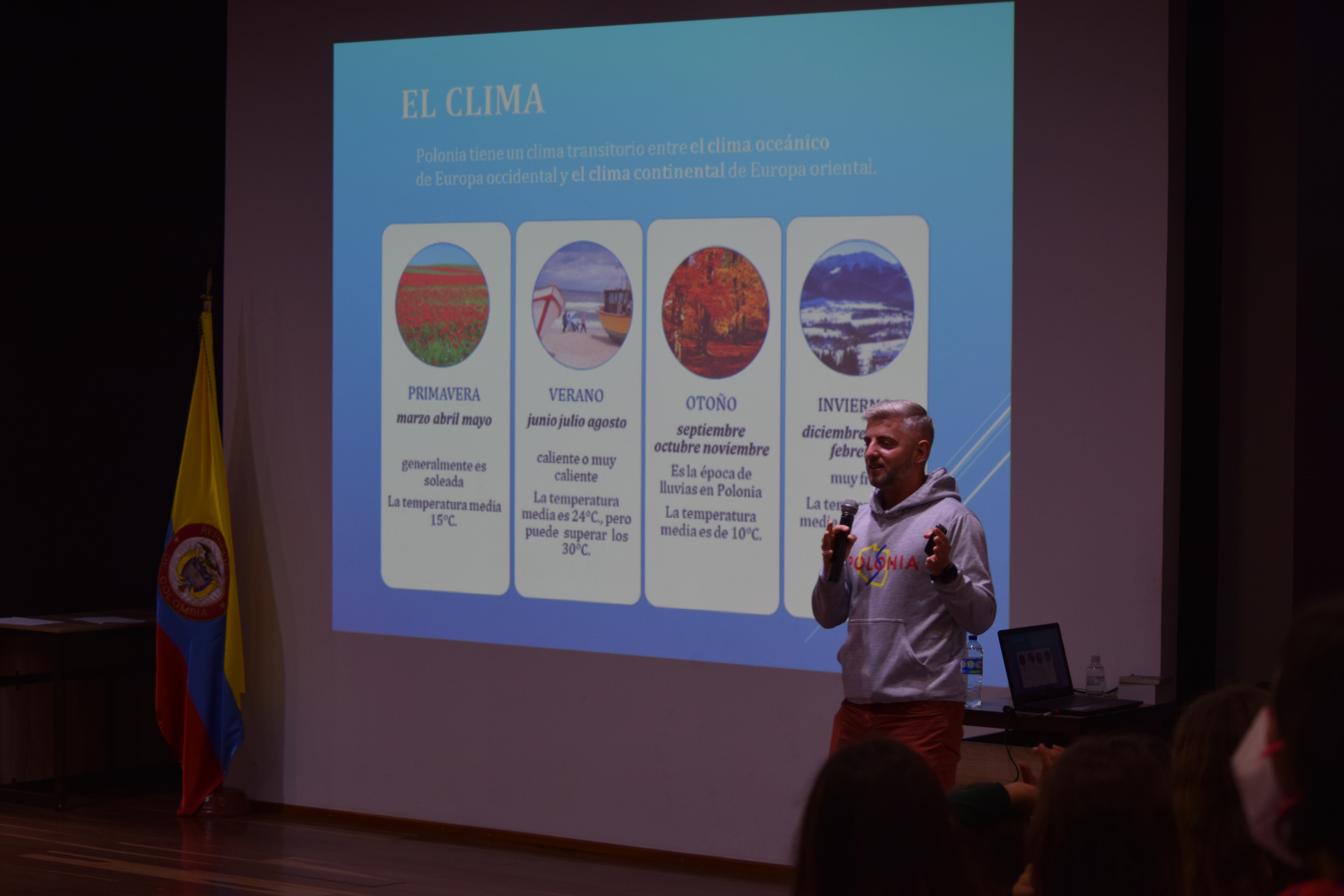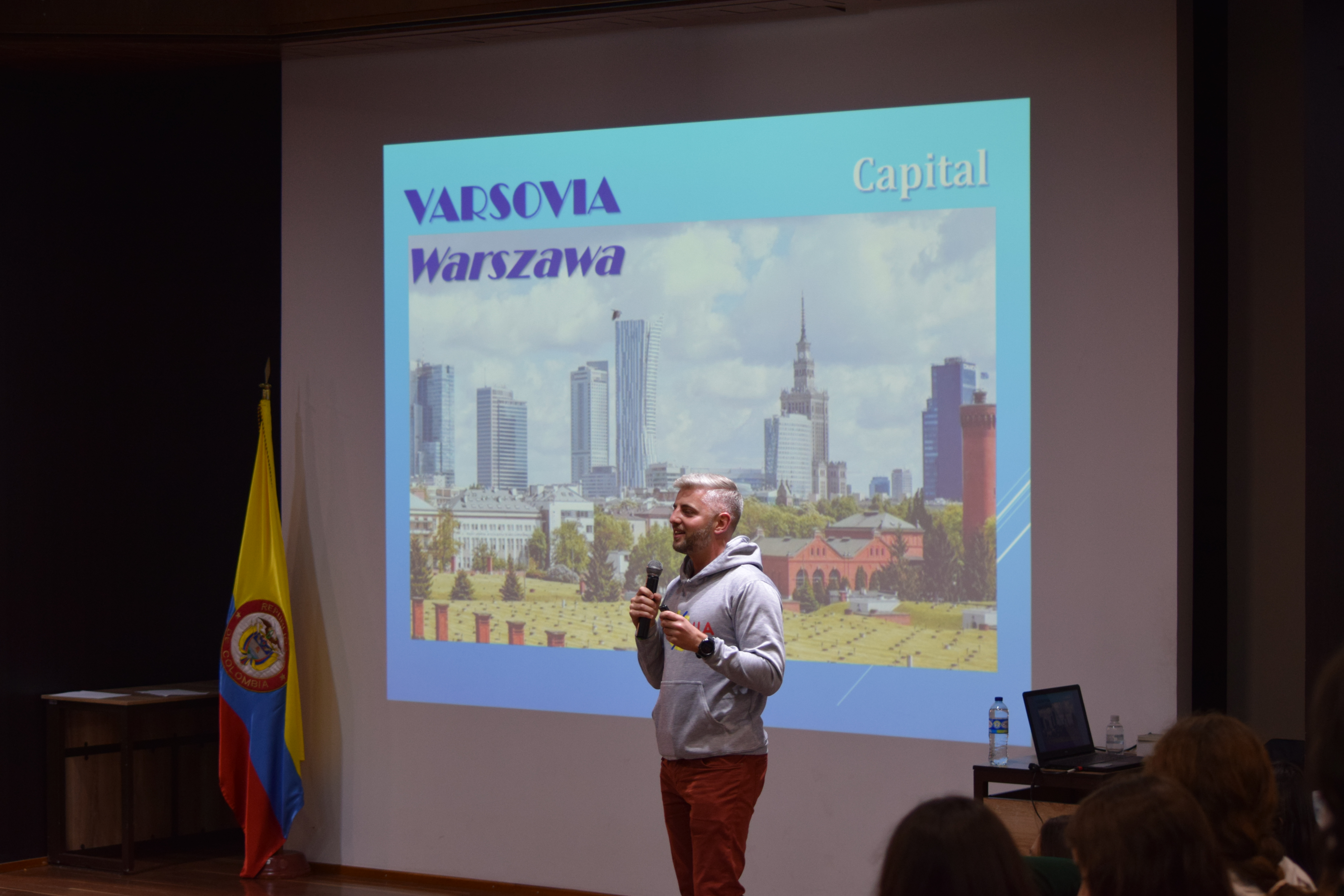 Promoción de Polonia por el Señor Cónsul Oskar Gradziel en el Colegio Santa María de Bogotá