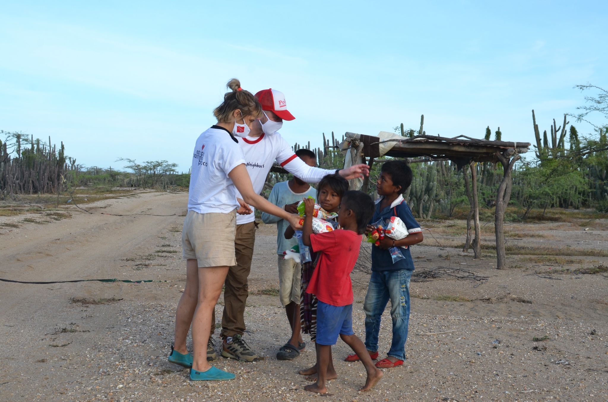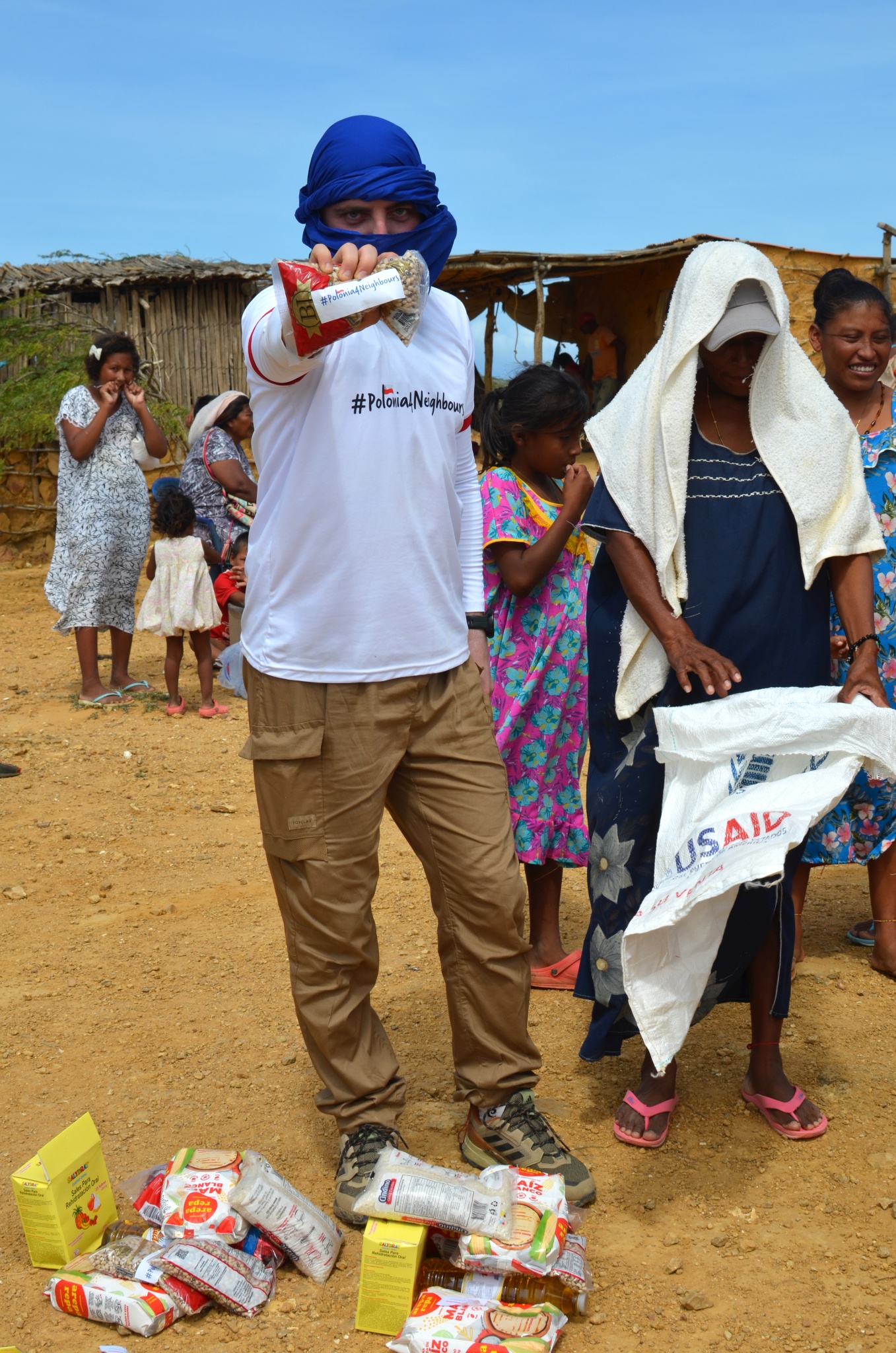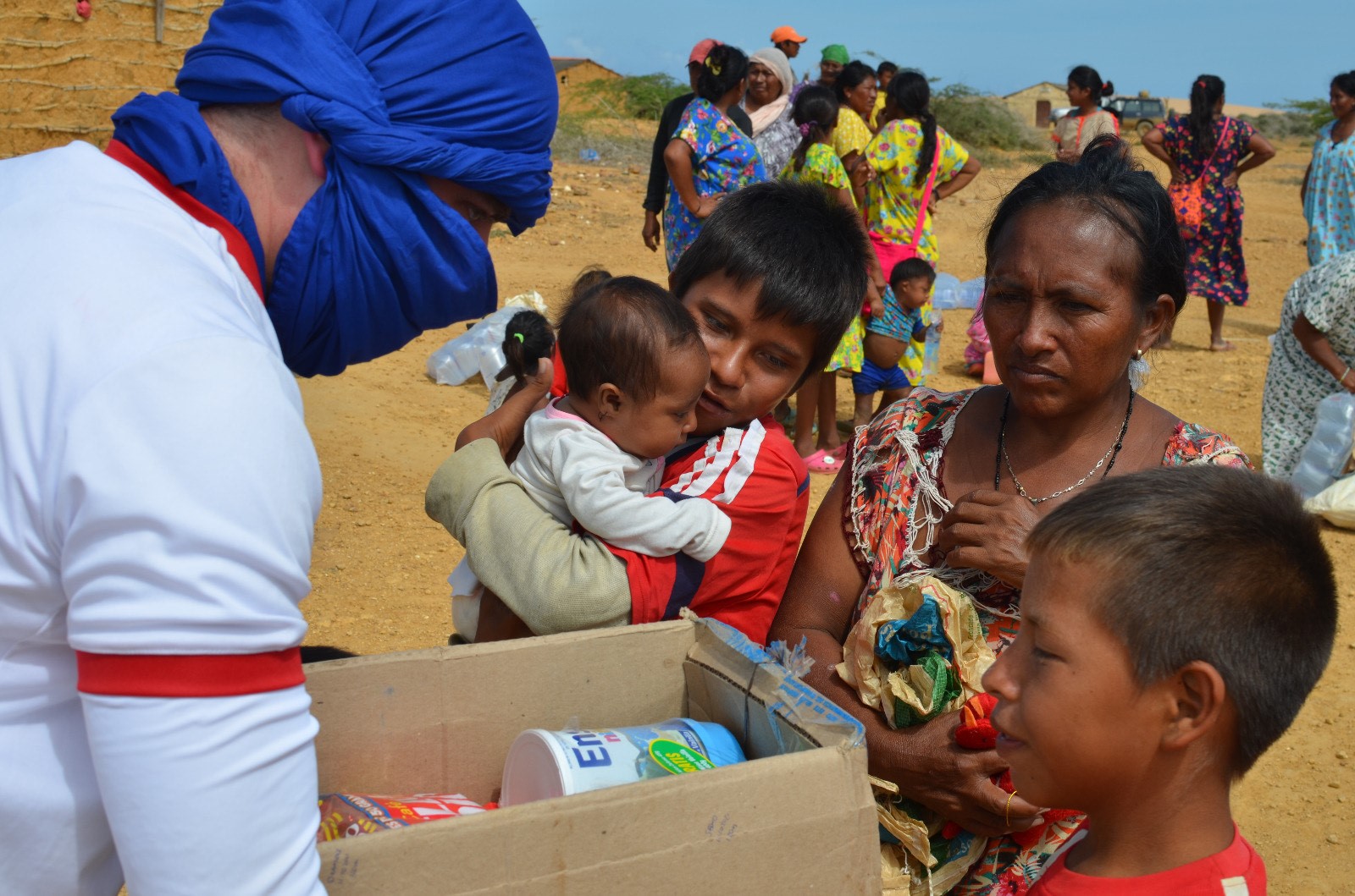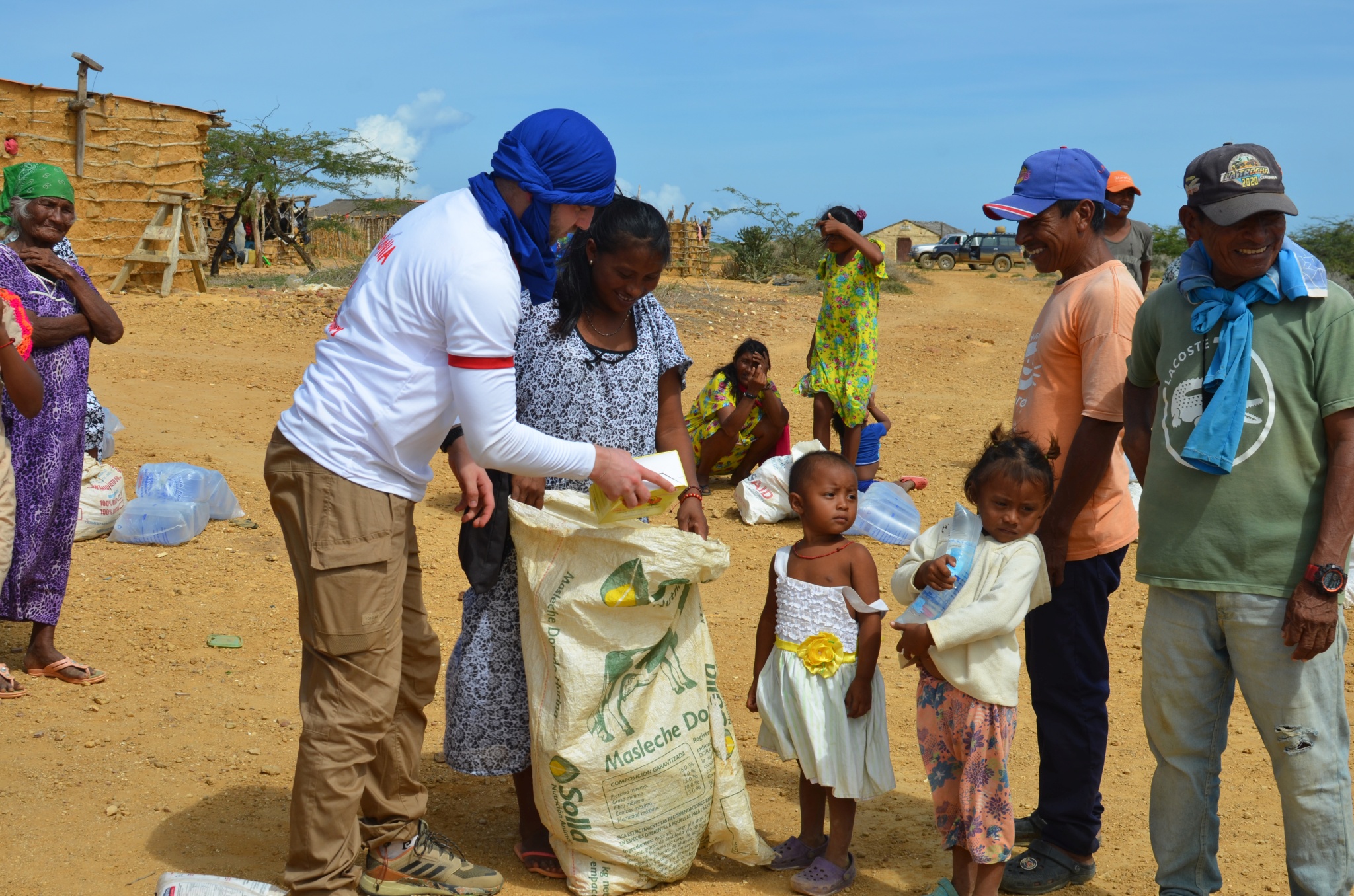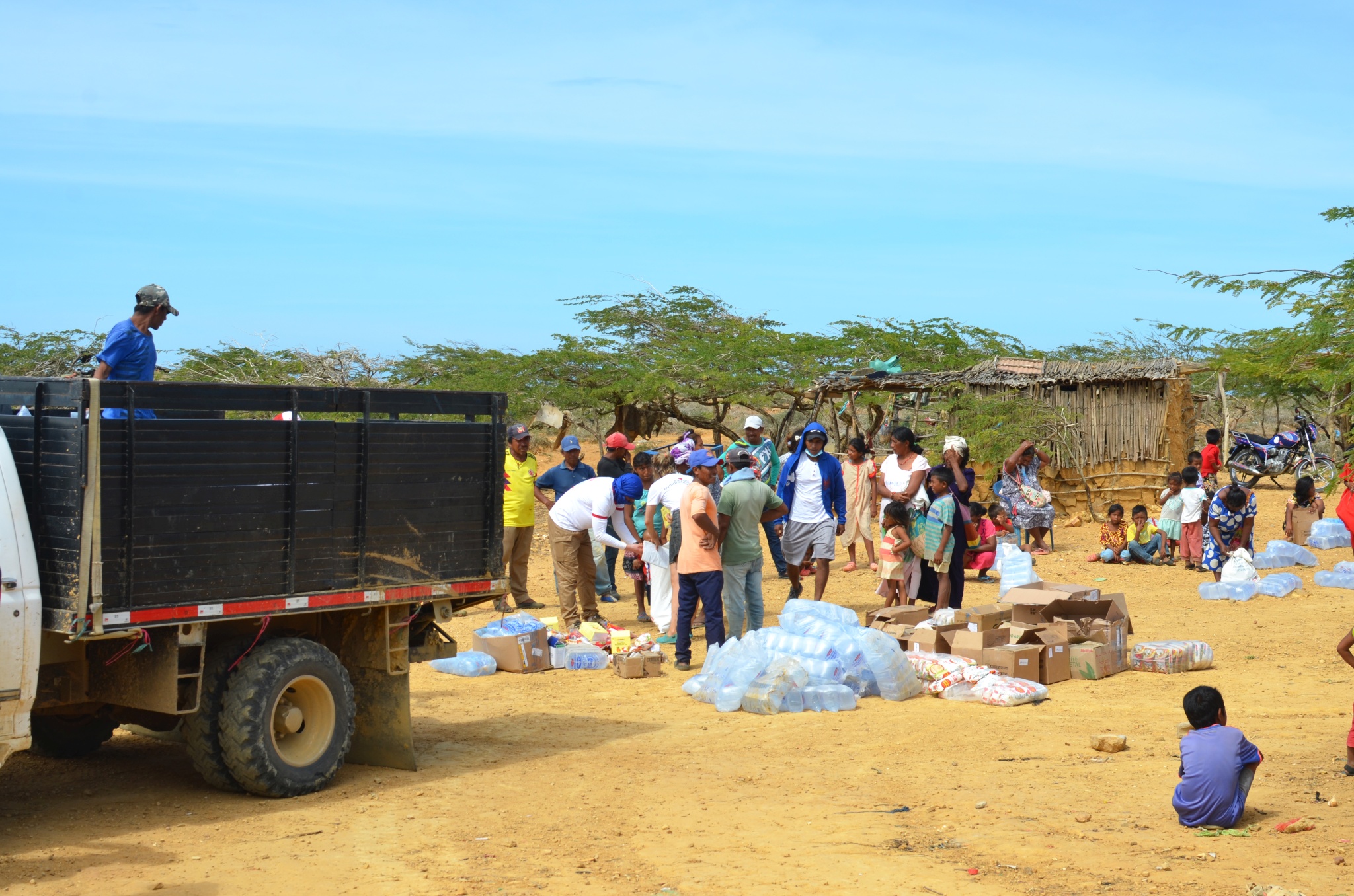 En esta ocasión, más de 30 familias bien numerosas del pueblo Wayúu en la Alta Guajira al norte del país (una región desértica y de las más pobres de Colombia) recibieron una ayuda de casi 4 toneladas de productos para satisfacer sus necesidades básicas.