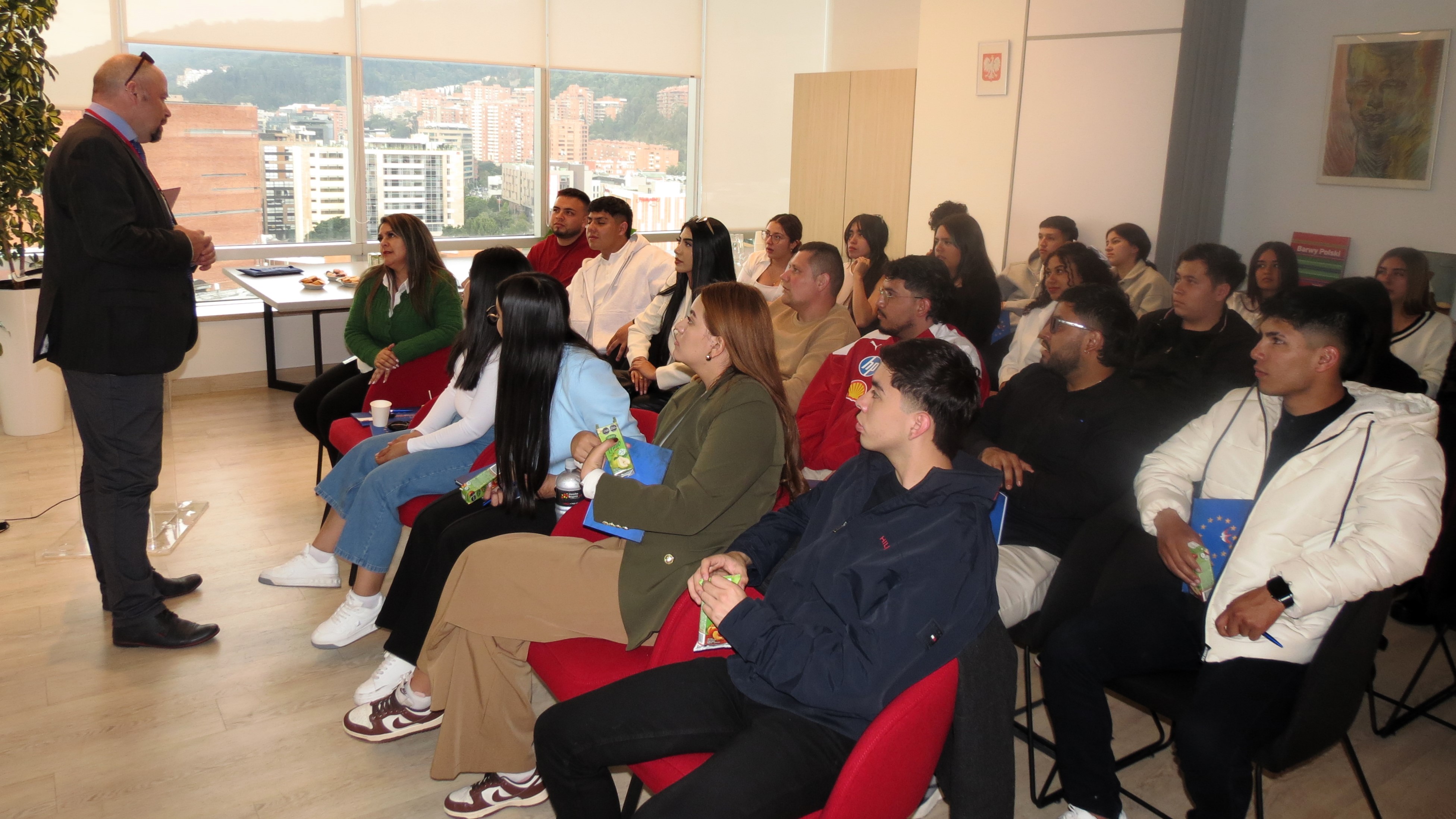 El 5 de noviembre, un grupo de 25 estudiantes del sur de Colombia visitó la Embajada de Polonia en Bogotá, donde tuvieron la oportunidad de conocer aspectos clave de la economía polaca. El cónsul Radosław Smyk les dio la bienvenida en nombre de la embajadora Barbara Sośnicka. Jorge Delgado, experto económico de la Embajada, compartió con los estudiantes información sobre el dinámico crecimiento de la economía polaca en las últimas tres décadas y el estado y las perspectivas del comercio bilateral entre Polonia y Colombia. El encuentro despertó gran interés entre los asistentes, quienes formularon numerosas preguntas.