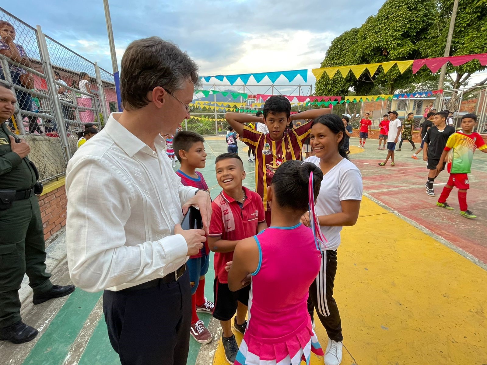Al encuentro asistieron autoridades de Chaparral en cabeza del alcalde Hugo Fernando Arce Hernández, representantes de la Casa Lúdica de este municipio, encargada de la selección de las participantes de la edición de este año del citado programa (10 niñas jugadoras de fútbol sala) y la Sra. Karen Tobar de la Dirección General de Cultura del Ministerio de Relaciones Exteriores de Colombia. Las niñas que estuvieron en Polonia participando en el programa, son actualmente entrenadoras de jugadoras más jóvenes de la Casa Lúdica de Chaparral y comparten la experiencia adquirida durante su visita a Polonia. Nos complace el éxito del programa de diplomacia deportiva Polonia-Colombia y deseamos buena suerte a todos los jóvenes adeptos al deporte en Colombia, especialmente en las regiones amenazadas por la violencia, el narcotráfico y el reclutamiento por parte de grupos armados ilegales.