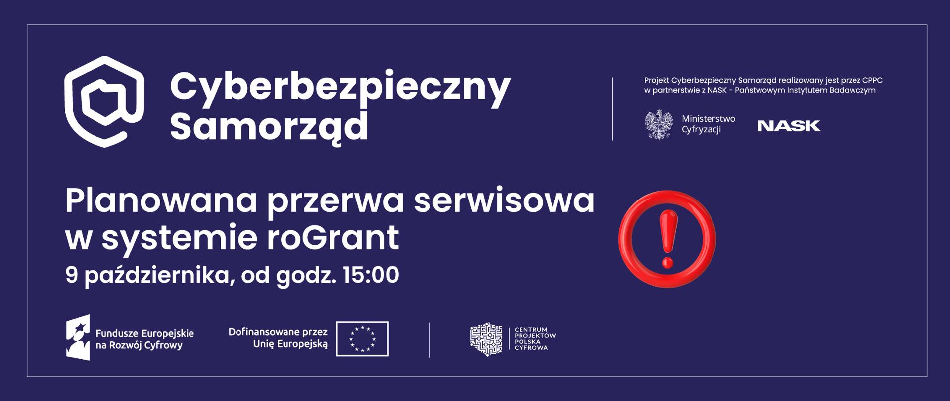 uprzejmie informujemy, że dzisiaj (środa, 9.10), od godziny 15:00 będą trwały prace serwisowe systemu roGrant. Zakończenie prac planowane jest na godzinę 18:00.