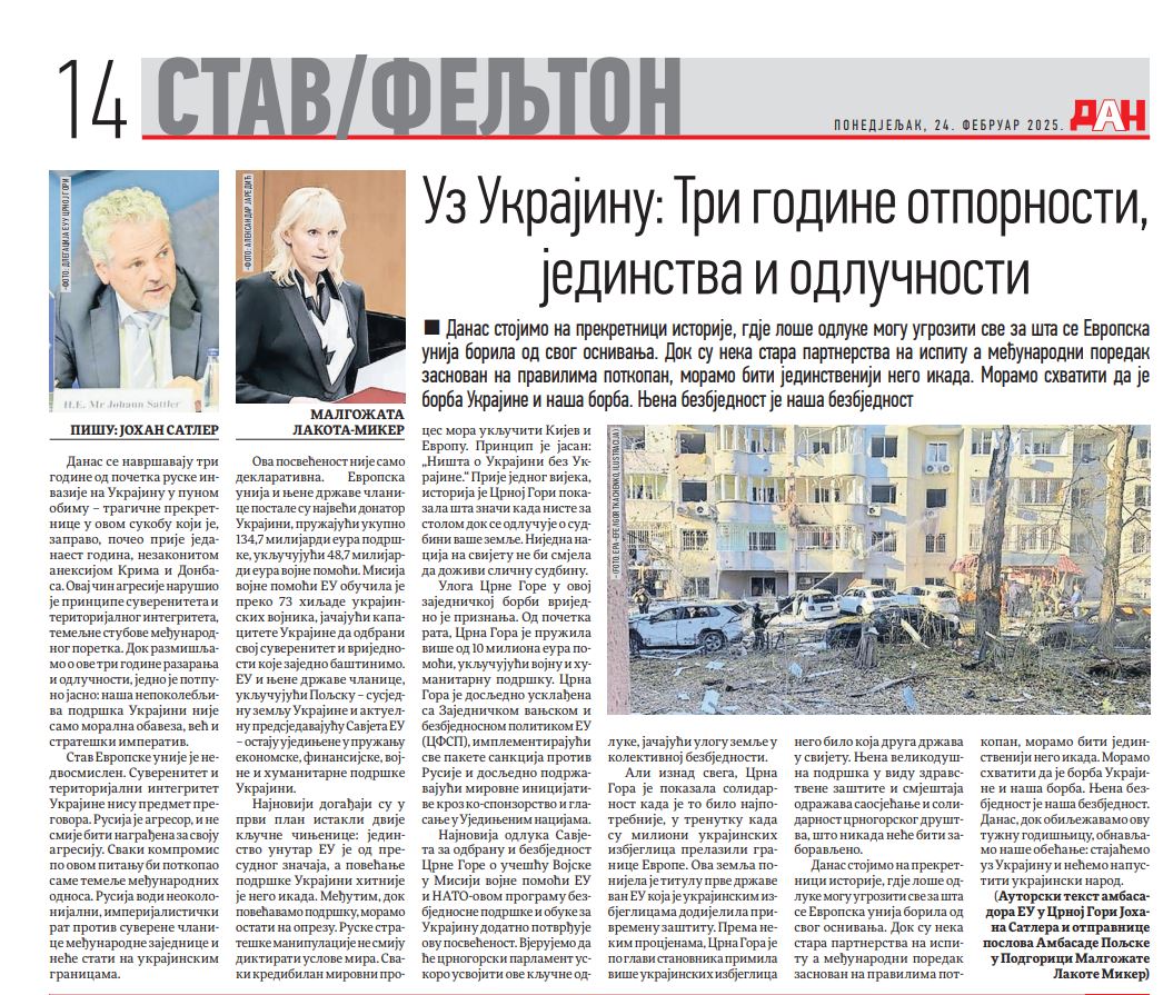 Autorski tekst "Uz Ukrajinu: Tri godine otpornosti, jedinstva i odlučnosti"