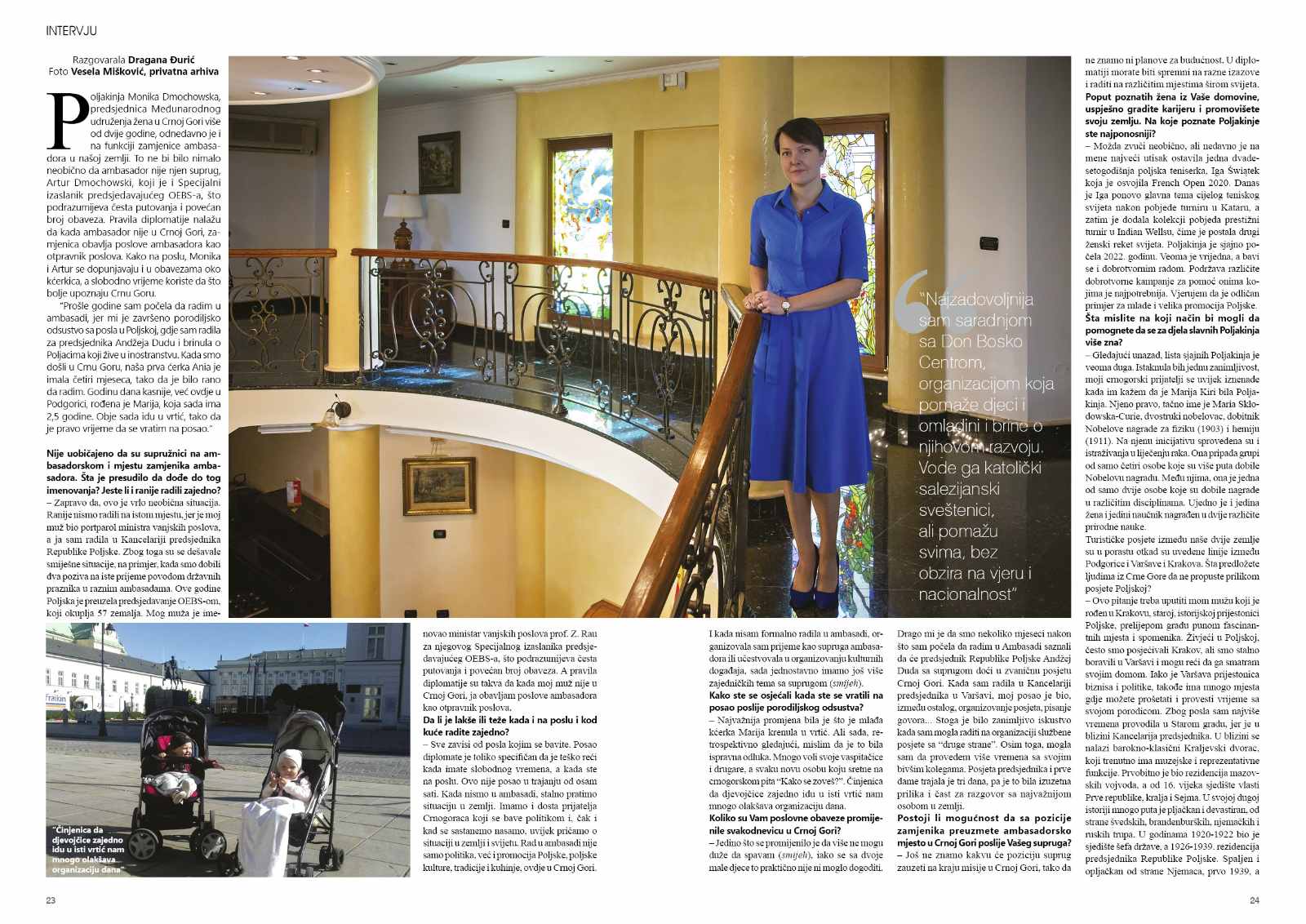 Intervju sa konzulkom Republike Poljske Monikom Dmohovskom objavljen je u poznatom i popularnom na Balkanu časopisu Gracija.