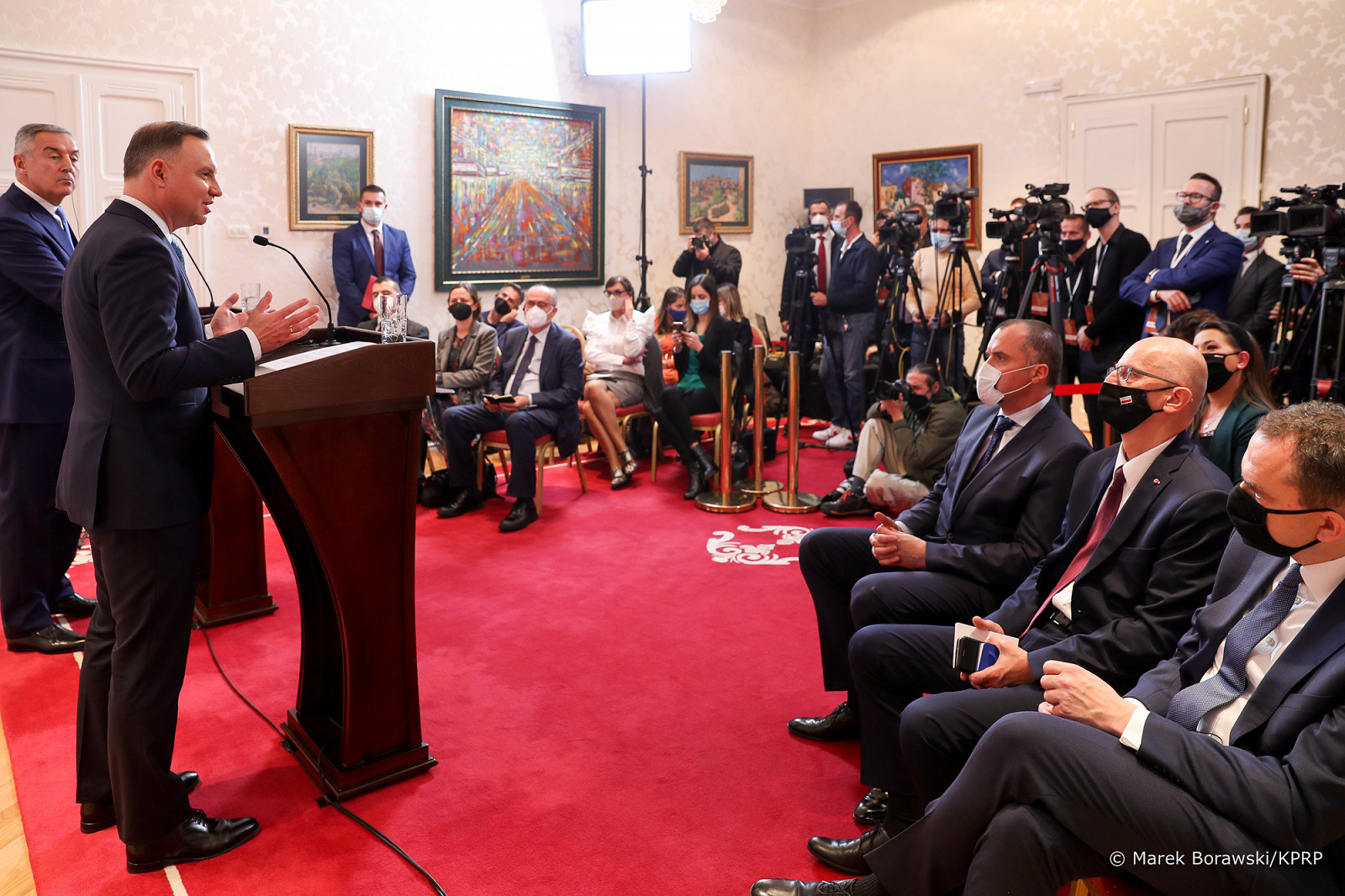Glavna tema razgovora bila je situacija na poljsko-bjeloruskoj granici i podrška evropskim aspiracijama Crne Gore. Predsjednik je dao i intervju za crnogorsku televiziju TVCG 1, u kojem je istakao podršku Poljske proširenju Evropske unije: „Mjesto Crne Gore je u Evropi, to je u interesu Zajednice“, „Ne razumijemo protivljenje proširenju od strane pojedinih država“.