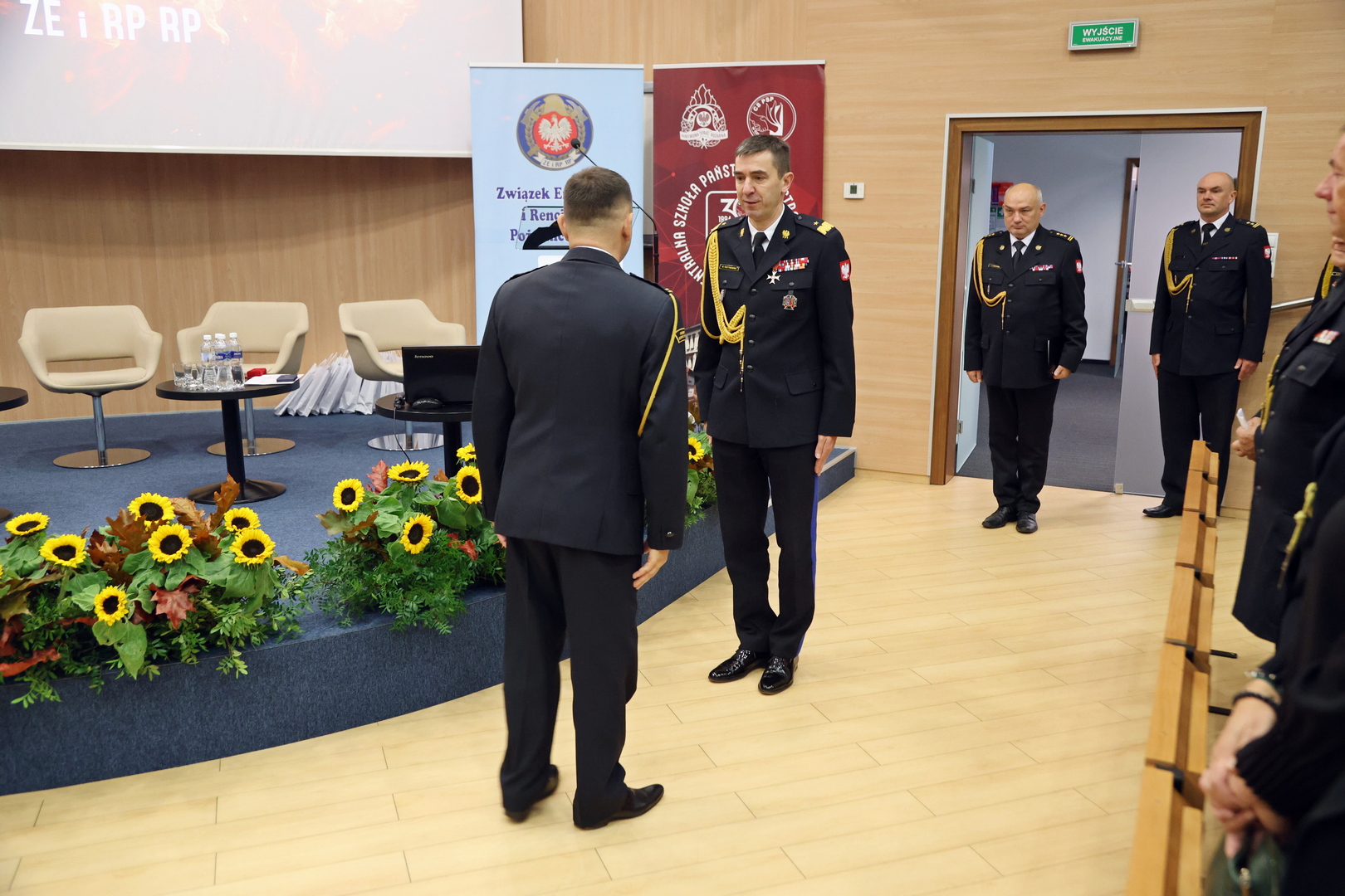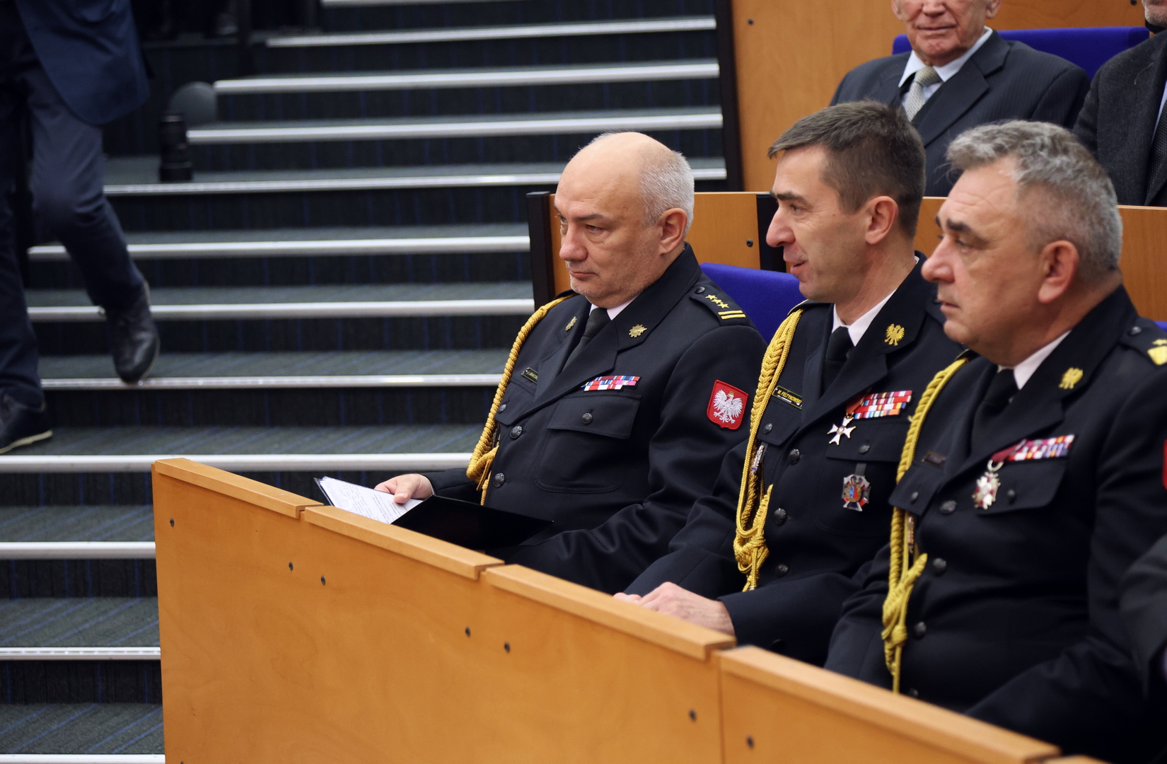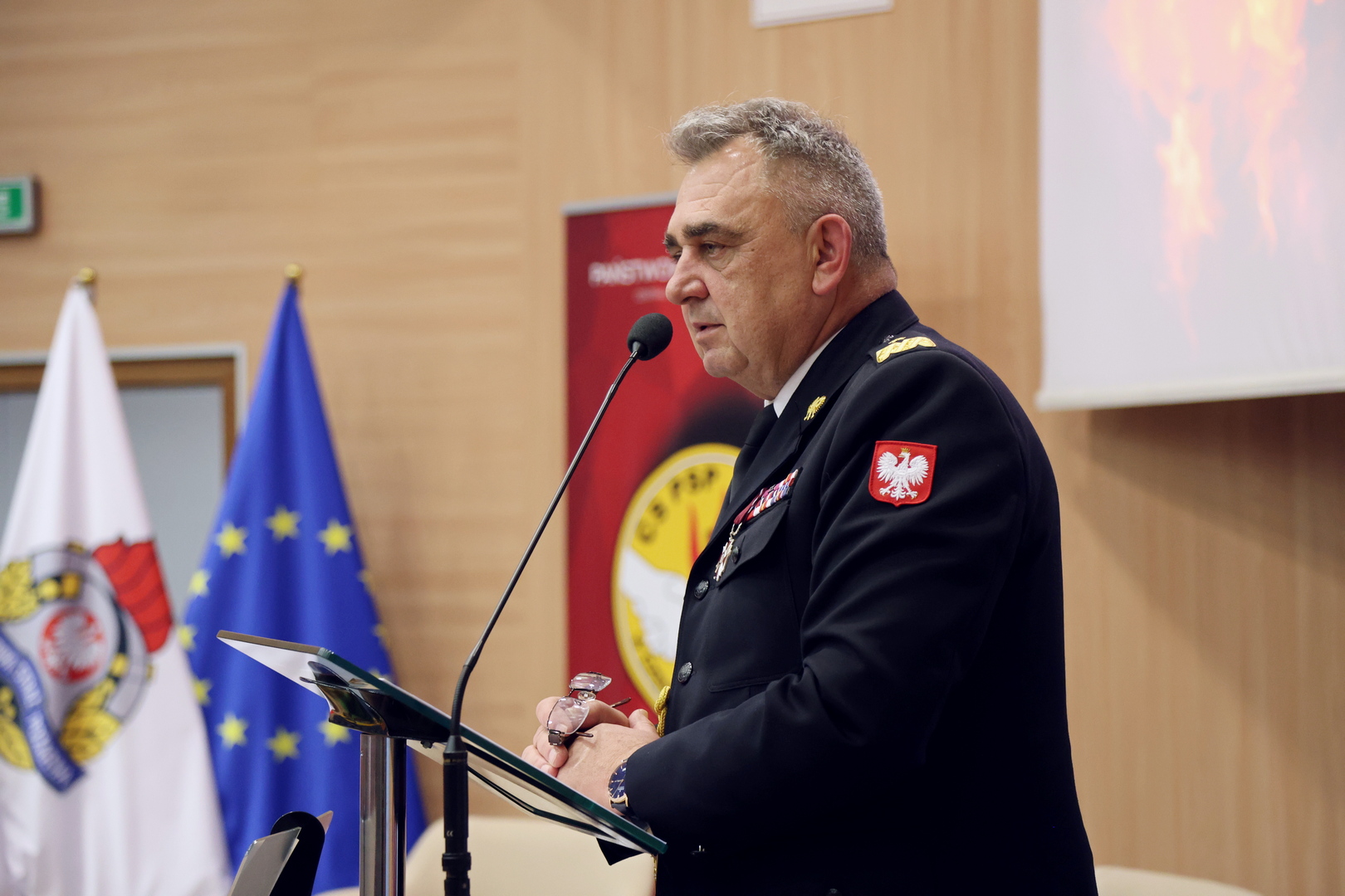 Komendant główny PSP, nadbryg. Mariusz Feltynowski, swój wykład nt. „Rola szkolnictwa pożarniczego w tworzeniu bezpieczeństwa państwa” rozpoczął cytując Nelsona Mandelę: „𝓔𝓭𝓾𝓴𝓪𝓬𝓳𝓪 𝓳𝓮𝓼𝓽 𝓷𝓪𝓳𝓹𝓸𝓽𝓮̨𝔃̇𝓷𝓲𝓮𝓳𝓼𝔃𝓪̨ 𝓫𝓻𝓸𝓷𝓲𝓪̨, 𝓴𝓽𝓸́𝓻𝓮𝓳 𝓶𝓸𝔃̇𝓮𝓼𝔃 𝓾𝔃̇𝔂𝓬́, 𝓪𝓫𝔂 𝔃𝓶𝓲𝓮𝓷𝓲𝓬́ 𝓼́𝔀𝓲𝓪𝓽”.