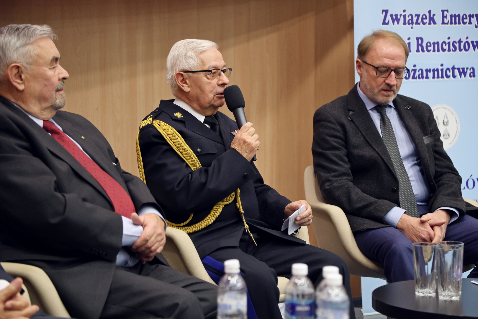W dyskusji na temat „Wyzwań oraz miejsca Centralnej Szkoły PSP w Częstochowie w aktualnej sytuacji geopolitycznej” uczestniczyli: nadbryg. w st. spocz. Ryszard Grosset, st. bryg. w st. spocz. Elżbieta Rakowska, st. bryg. w st. spocz. Marek Chmiel, st. bryg. w st. spocz. Marek Płotica oraz st. bryg. w st. spocz. Jan Kielin.
