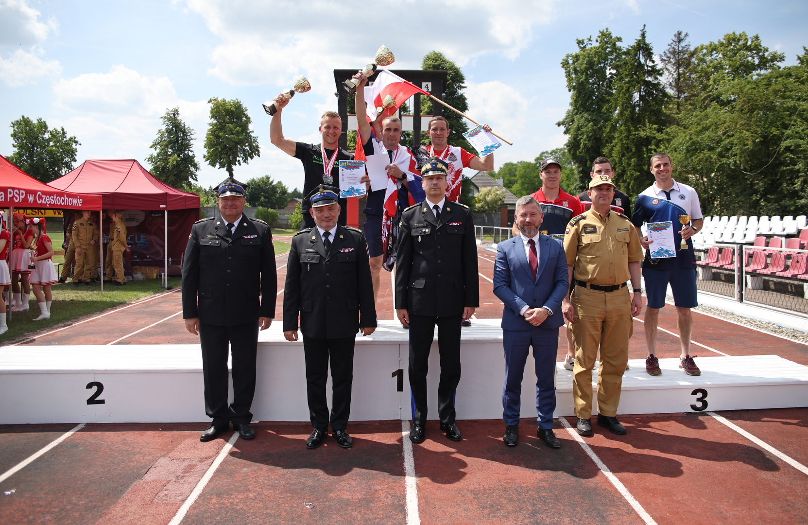 Z tego miejsca komendant Centralnej Szkoły PSP w Częstochowie st. bryg. Jarosław Jankowski wraz ze swoimi zastępcami st. bryg. Piotrem Wosiem oraz st. bryg. dr Damianem Hajdasem, serdecznie dziękują wszystkim funkcjonariuszom, pracownikom cywilnym, kadetom i kursantom, za zaangażowanie i wkład pracy włożony w przygotowania do tegorocznych Międzynarodowych Mistrzostw Polski w Sporcie Pożarniczym.
