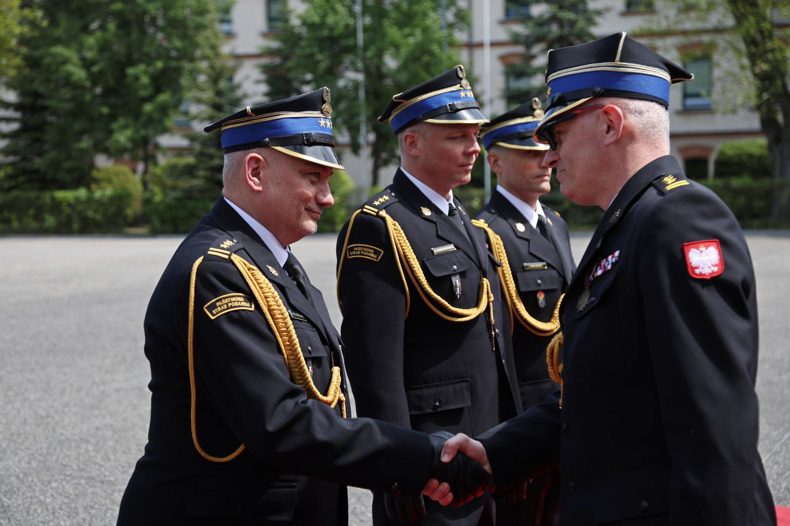 Dzień Strażaka to dzień, w którym oddajemy hołd wszystkim tym, którzy narażają swoje życie, aby chronić mienie, zdrowie, a nawet życie innych. To dzień, w którym doceniamy poświęcenie, odwagę i niezłomną determinację. Strażak - to słowo, które budzi poczucie bezpieczeństwa, spokoju i nadziei. Bo kiedy ktoś widzi płomienie, dym i chaos w sposób naturalny ucieka, a my wbrew wszystkiemu wkraczamy w sam środek tego żywiołu, aby nieść ratunek. Obchody Dnia Strażaka to wyjątkowa okazja, żeby Wam wszystkim za to podziękować. Kadrze dydaktycznej i pracownikom Szkoły, za wysiłek i olbrzymi wkład pracy w perfekcyjne przygotowanie przyszłych kadr Państwowej Straży Pożarnej do pełnienia służby w jednostkach terenowych na terenie całego kraju. Bycie strażakiem to honor i zaszczyt, a mundur zobowiązuje do godnego zachowania i odpowiedniej postawy. Strażacy pełniący służbę w Państwowej Straży Pożarnej muszą stale kształcić się, podnosić swoje kwalifikacje, by sprostać stawianym wymaganiom”.