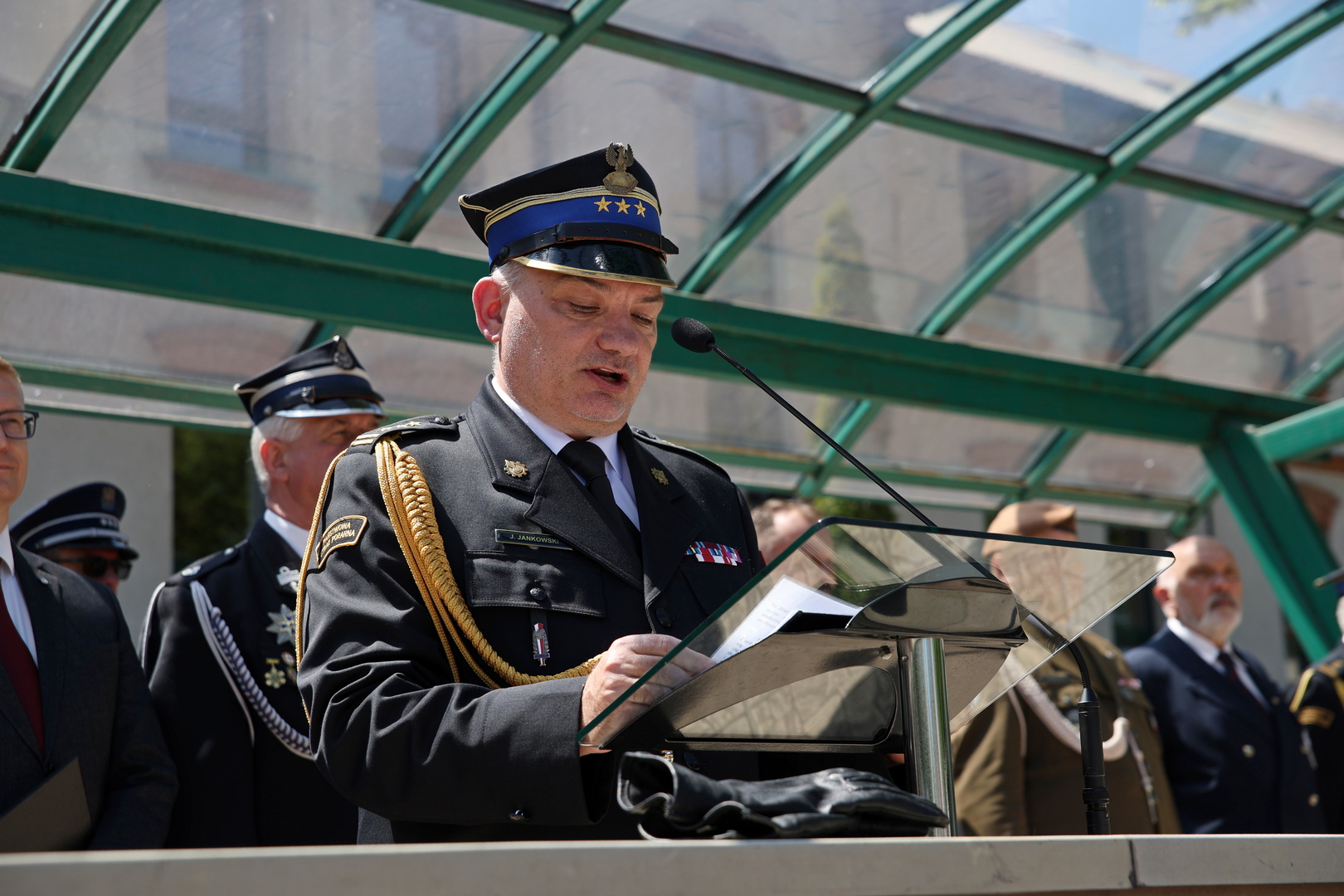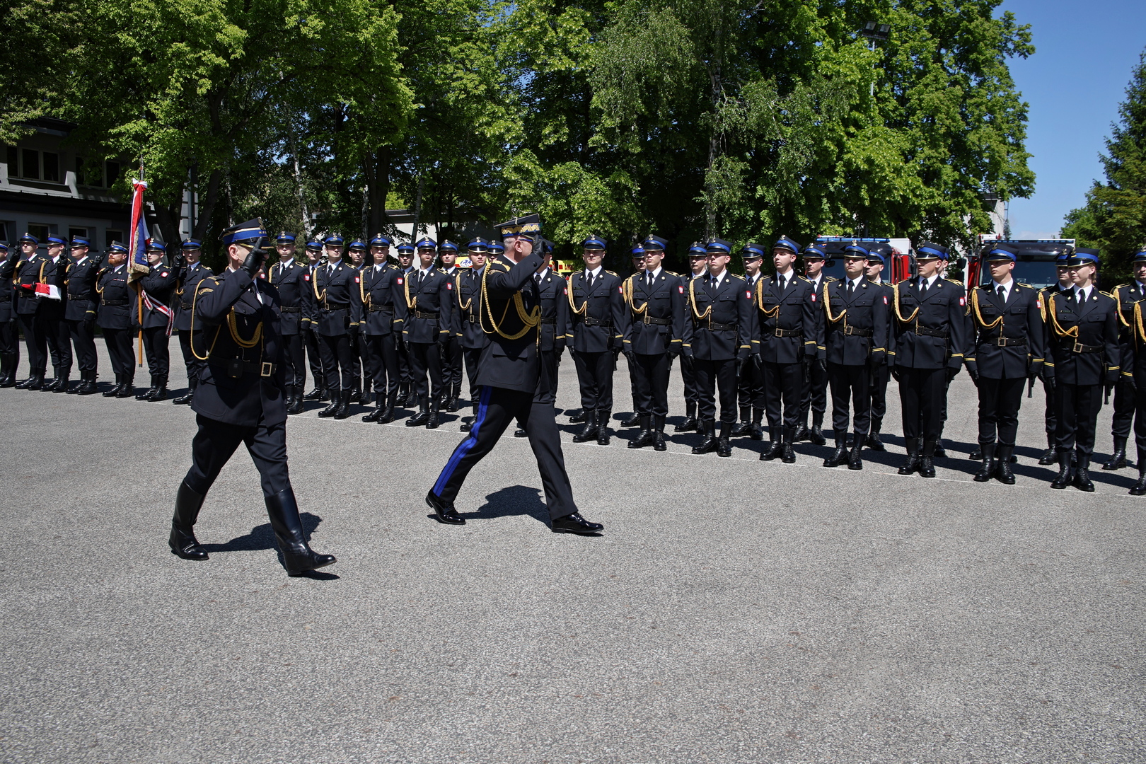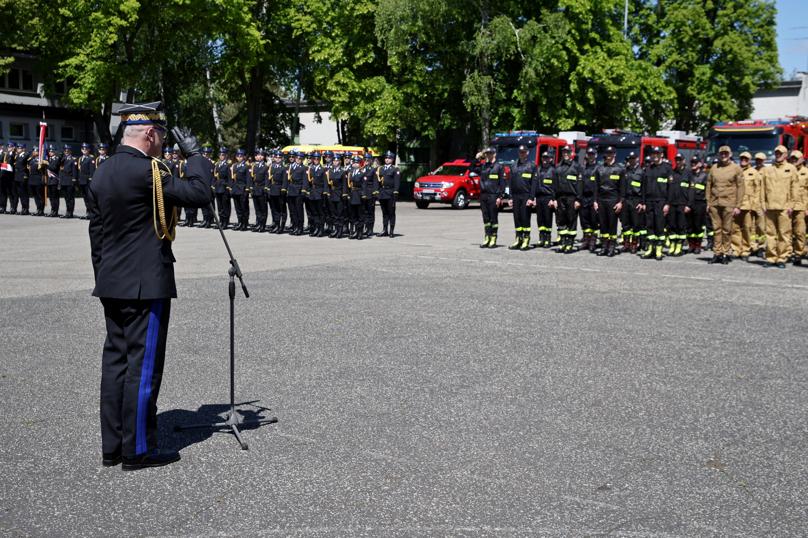 Otwierając uroczystość Komendant Centralnej Szkoły st. bryg. Jarosław Jankowski, przemawiając do strażaków, mówił m.in.: "Służba w szeregach Państwowej Straży Pożarnej jest trudna i odpowiedzialna. Wymaga hartu ducha, odwagi i poświęcenia w niesieniu pomocy drugiemu człowiekowi. Od wielu lat niezmiennie jako strażacy posiadamy największe zaufanie wśród rodaków. W roku 2024 ufało nam 94% społeczeństwa. To powód do dumy, ale także ogromna odpowiedzialność. To wynik naszej gotowości do bezinteresownego niesienia pomocy, gotowości do działań niezależnie od sytuacji. To my, strażacy, codziennie udowadniamy, że służba innym jest jednym z najważniejszych powołań, jakie człowiek może podjąć".