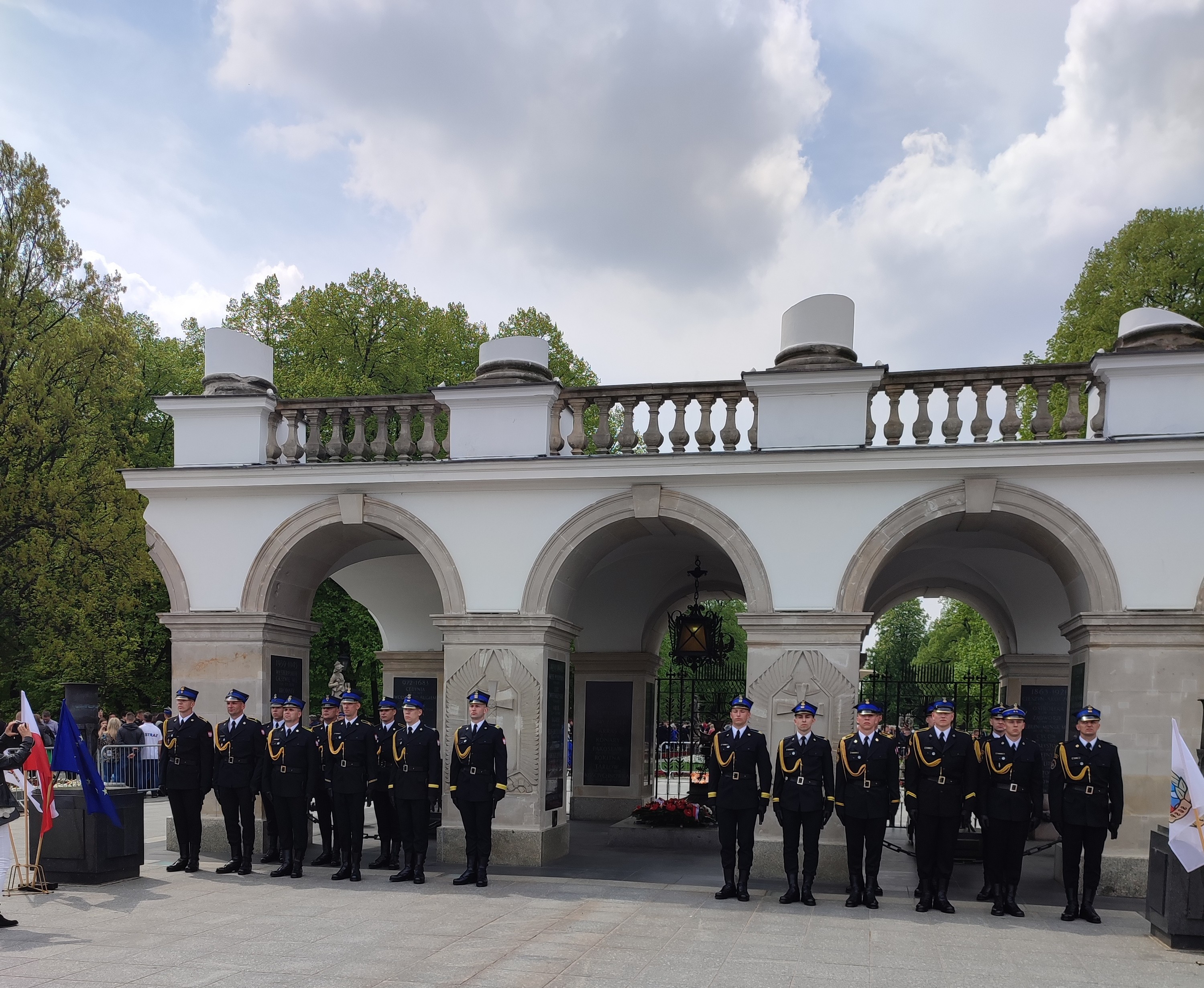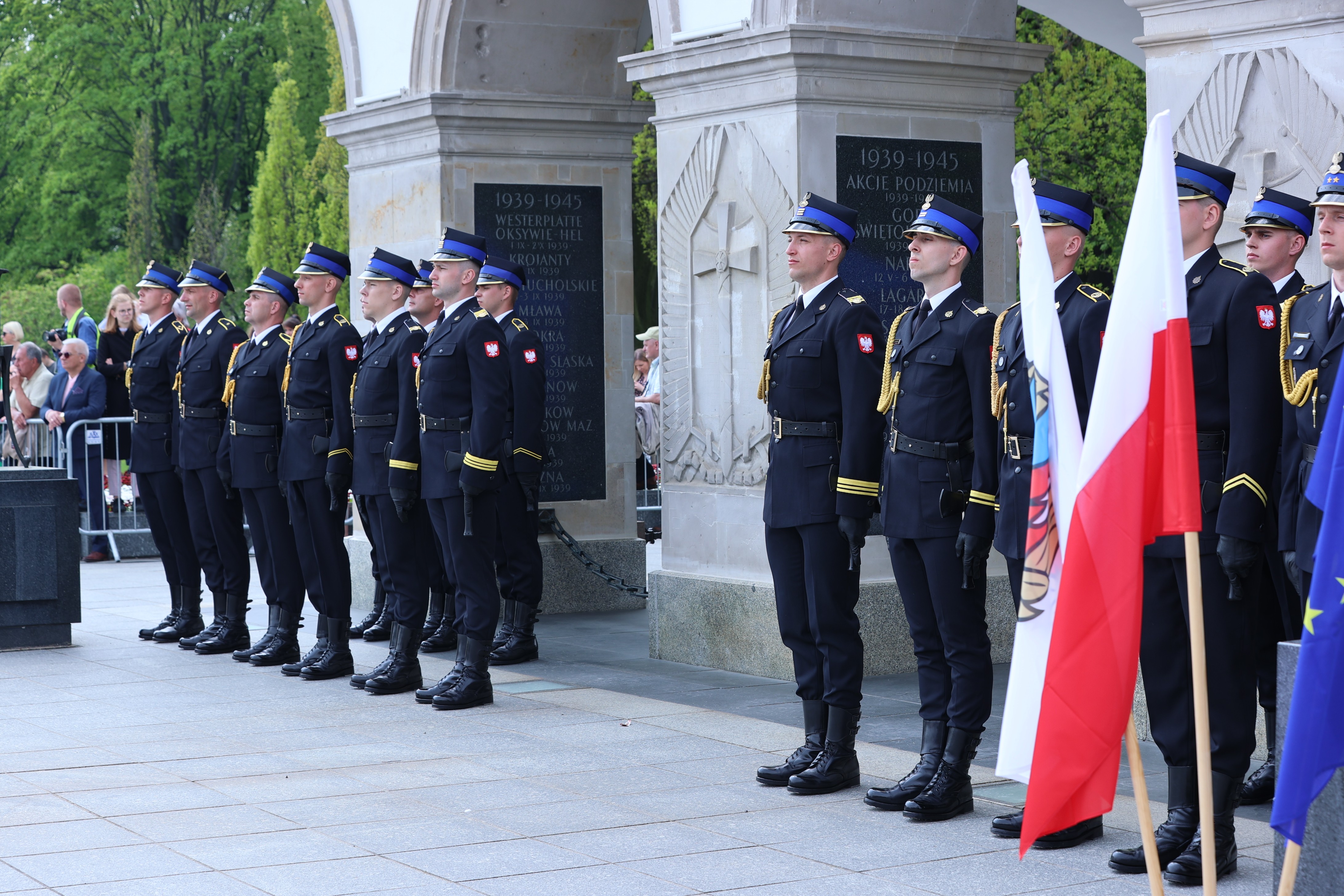 Następnie delegacja na czele z Prezydentem RP Andrzejem Dudą, złożyła wieniec na płycie Grobu Nieznanego Żołnierza. Ostatnim elementem uroczystości była defilada pododdziałów Państwowej Straży Pożarnej w oprawie muzycznej wykonanej przez Orkiestrę Ochotniczej Straży Pożarnej z Nadarzyna pod kierownictwem Mirosława Chilmanowicza.