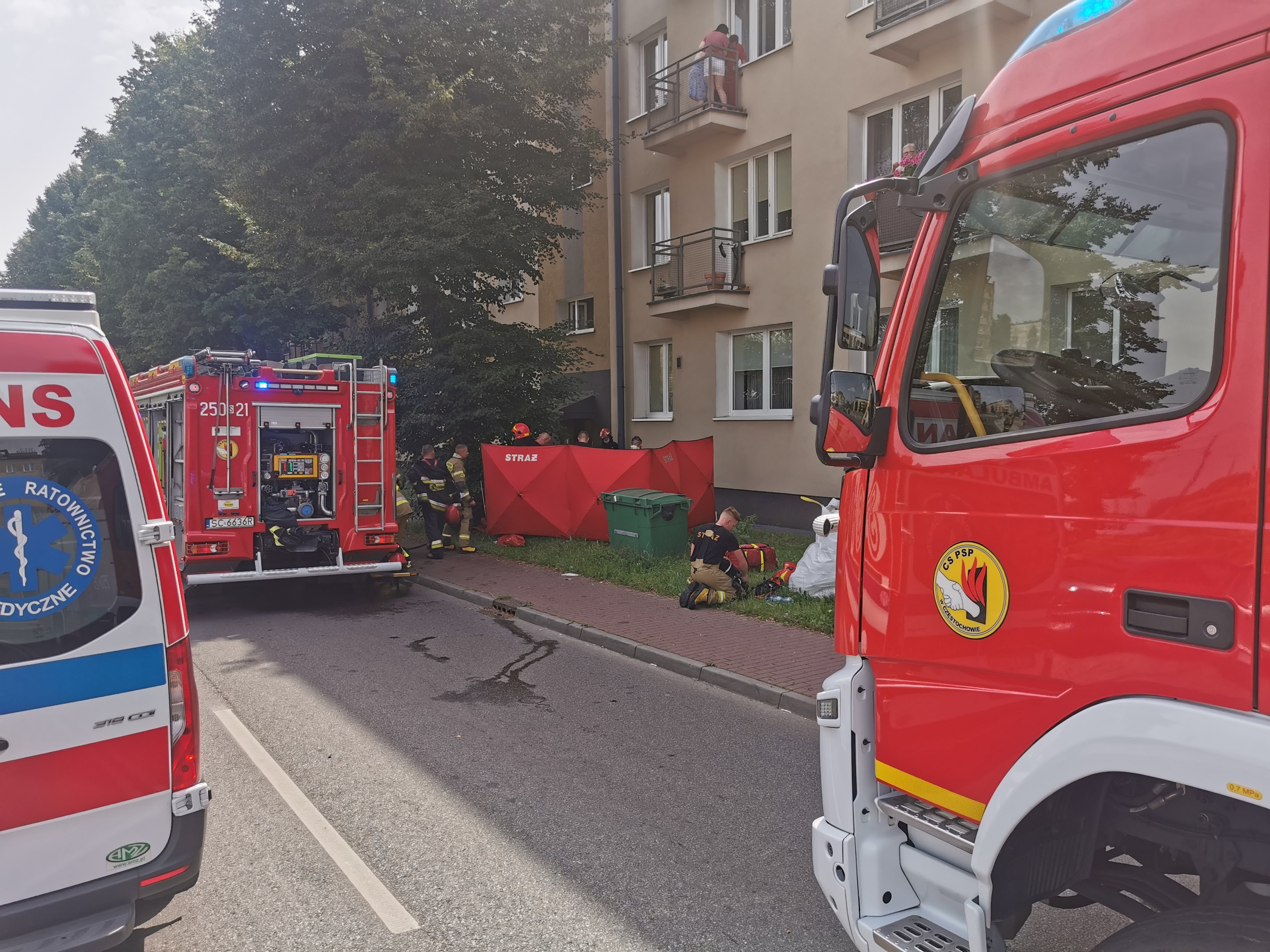 SKKM PSP otrzymało zgłoszenie na numer alarmowy 998: "Dymi się z okna, budynek wielorodzinny 3 piętrowy brak dalszych informacji - zgłasza osoba postronna. W miejscowości Częstochowa, Aleja Pokoju 14."