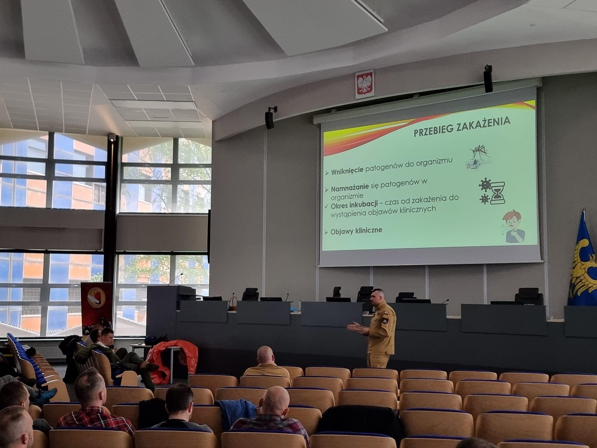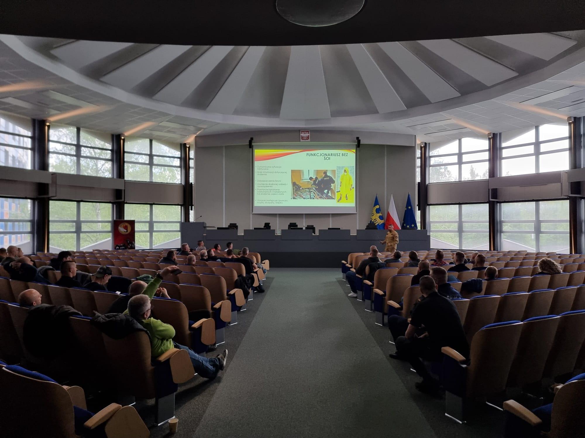 Swoje kwalifikacje w tym zakresie podnosili w trakcie szkolenia zarówno policjanci, jak i strażacy. Przedstawiciele CS PSP st. kpt. Artur Wydra oraz mł. kpt. Kamil Biały przedstawili uczestnikom szkolenia tematy z zakresu promieniowania jonizującego oraz zagrożeń biologicznych. Wydarzenie to było początkiem cyklu szkoleniowego, w którym brali udział funkcjonariusze NGRMP woj. śląskiego, opolskiego, małopolskiego, łódzkiego, wielkopolskiego, dolnośląskiego, świętokrzyskiego, strażacy ze specjalistycznych grup ratownictwa chemiczno-ekologicznego, mundurowi z samodzielnych pododdziałów kontrterrorystycznych Policji oraz policjanci realizujący działania minersko–pirotechniczne oraz CBRNE.