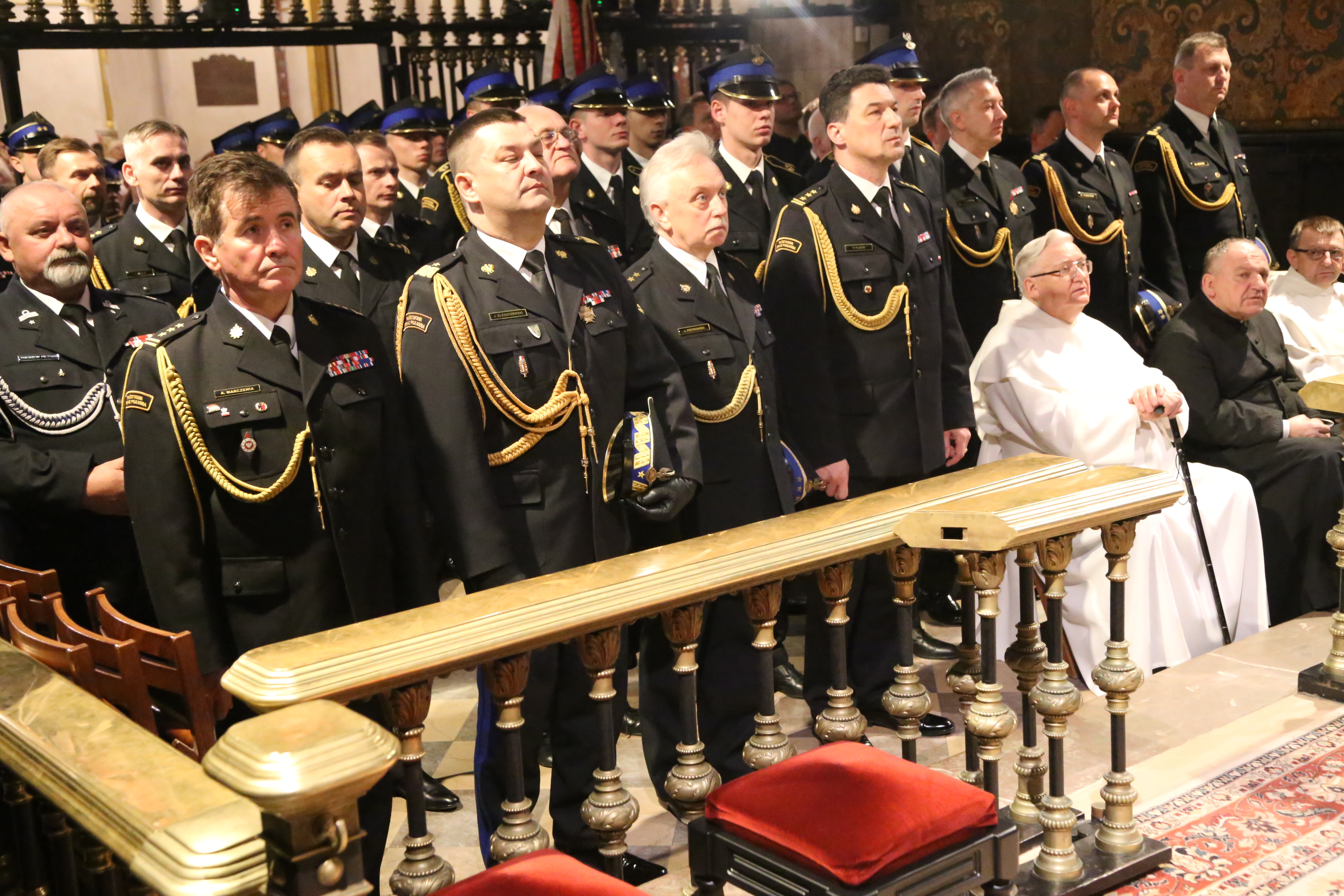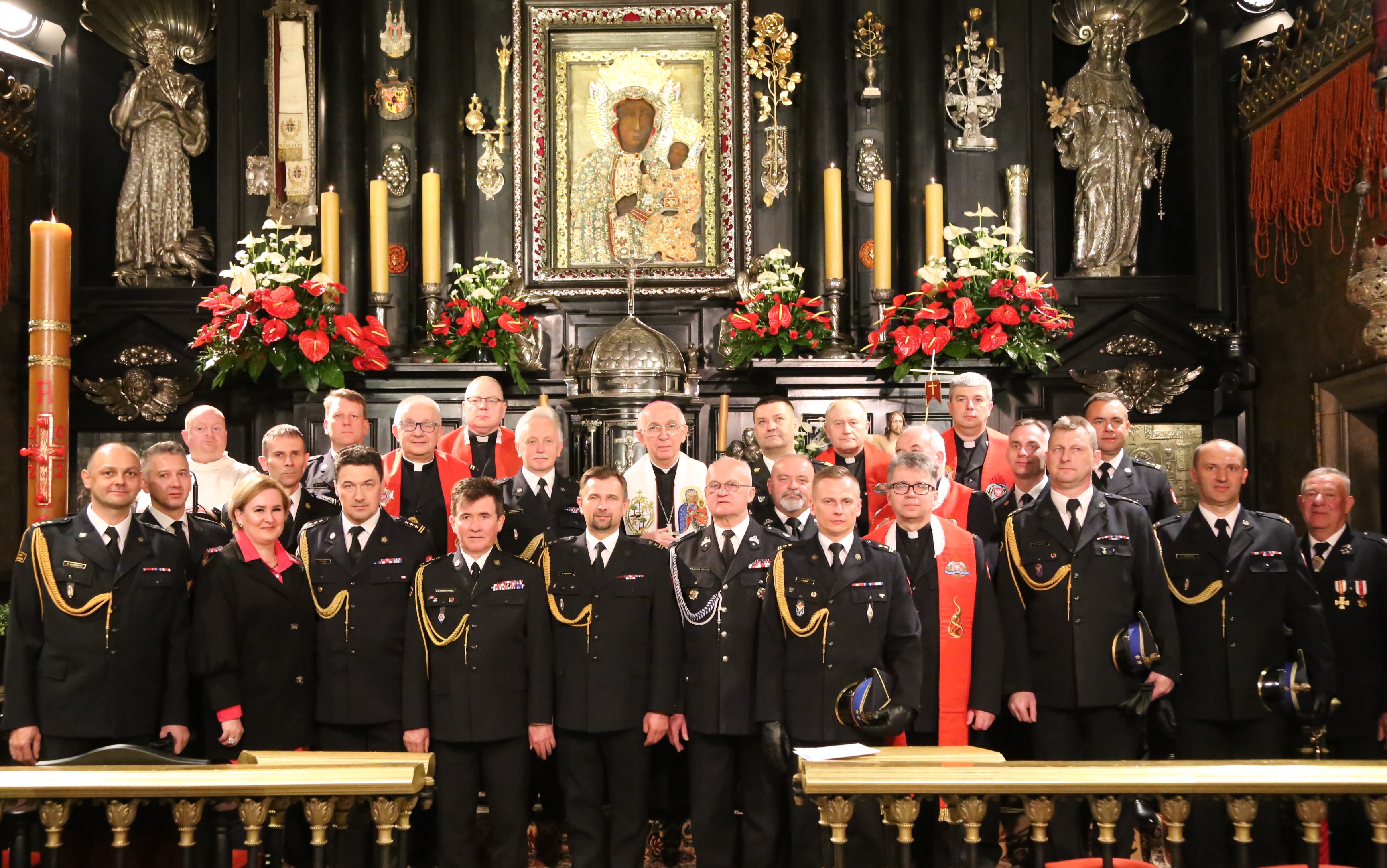 W nabożeństwie uczestniczyli miedzy innymi: śląski komendant wojewódzki PSP nadbryg. Jacek Kleszczewski wraz z zastępcą bryg. Arkadiuszem Krzemińskim, zastępca świętokrzyskiego komendanta wojewódzkiego PSP st. bryg. Jarosław Piotrowski, zastępca podkarpackiego komendanta wojewódzkiego PSP st. bryg. Andrzej Marczenia, komendant Centralnej Szkoły PSP w Częstochowie st. bryg. Piotr Placek wraz z zastępcą bryg. Damianem Hajdasem, naczelnikami wydziałów CS PSP oraz kadetami, komendant miejski PSP w Częstochowie bryg. Marek Radosz, komendanci powiatowi i miejscy PSP woj. śląskiego, dr Piotr Grazda - dyrektor Samodzielnego Publicznego Zakładu Opieki Zdrowotnej w Katowicach, druhowie Ochotniczych Straży Pożarnych oraz duchowni.