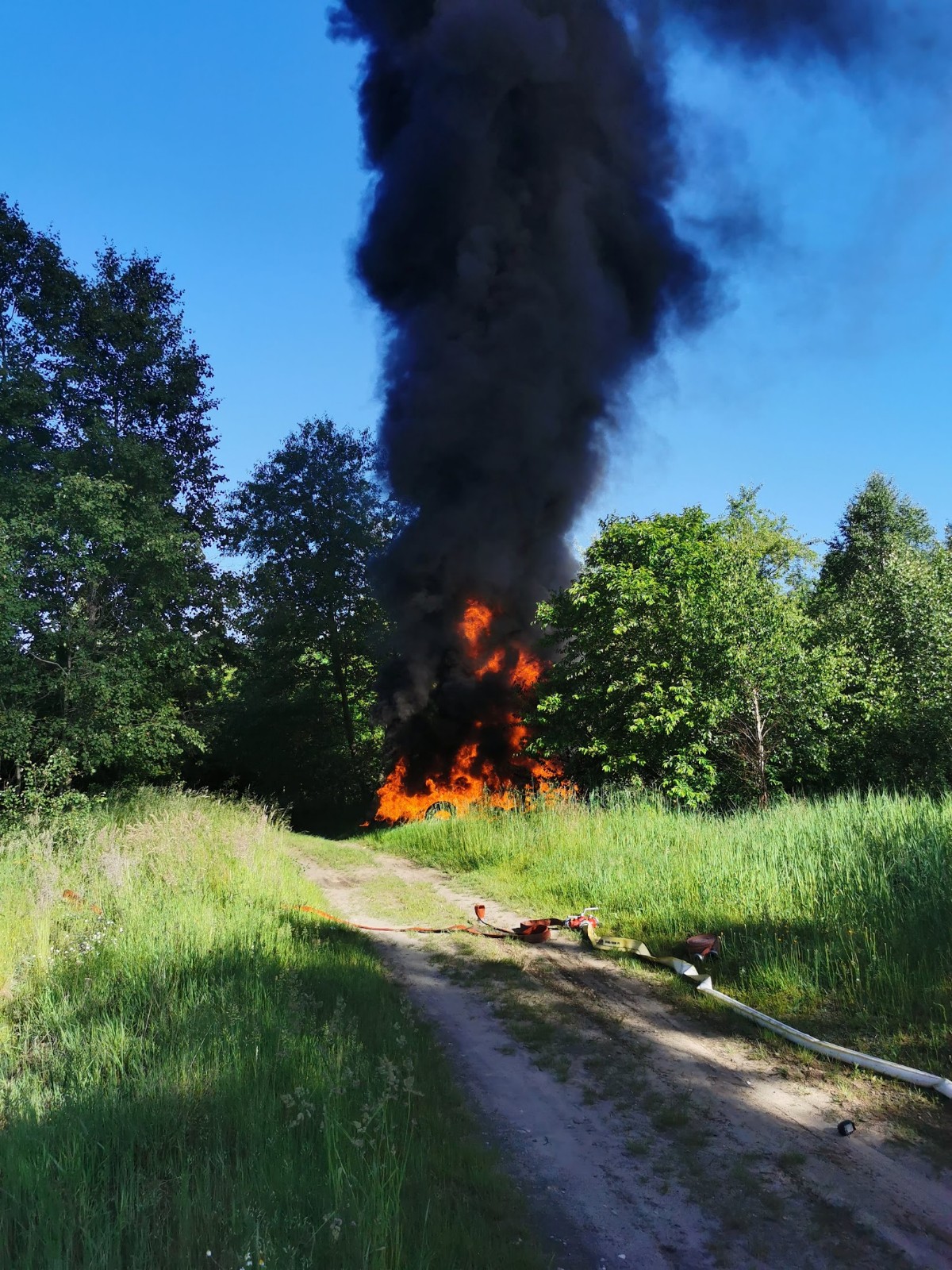 Gorzelnia - Pożar opon w lesie