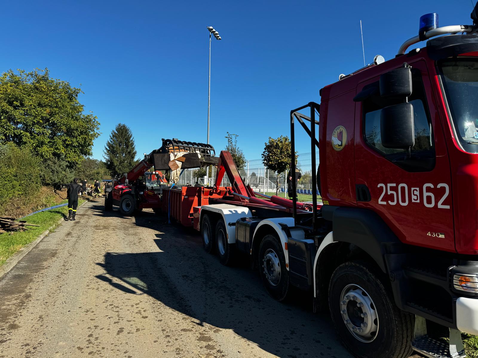 W działaniach uczestniczą także nośnik kontenerowy oraz szkolna koparka.