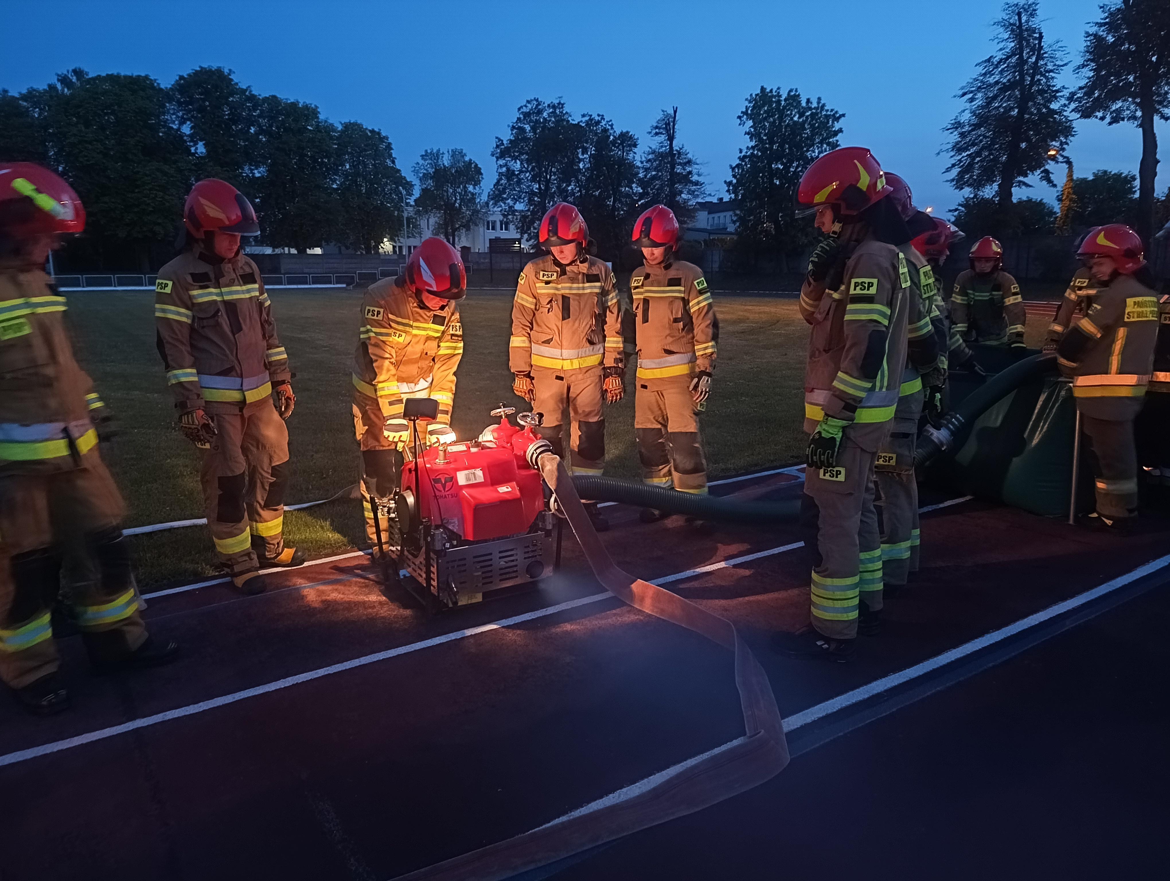 W dniach 23 oraz 25 lipca 2024 r. na terenie Centralnej Szkoły Państwowej Straży Pożarnej odbyły się manewry nocne z taktyki zwalczania pożarów z dostarczania wody na duże odległości dla słuchaczy szkolenia podstawowego w zawodzie strażak - Turnus 3/2024 i Turnus 4/2024.