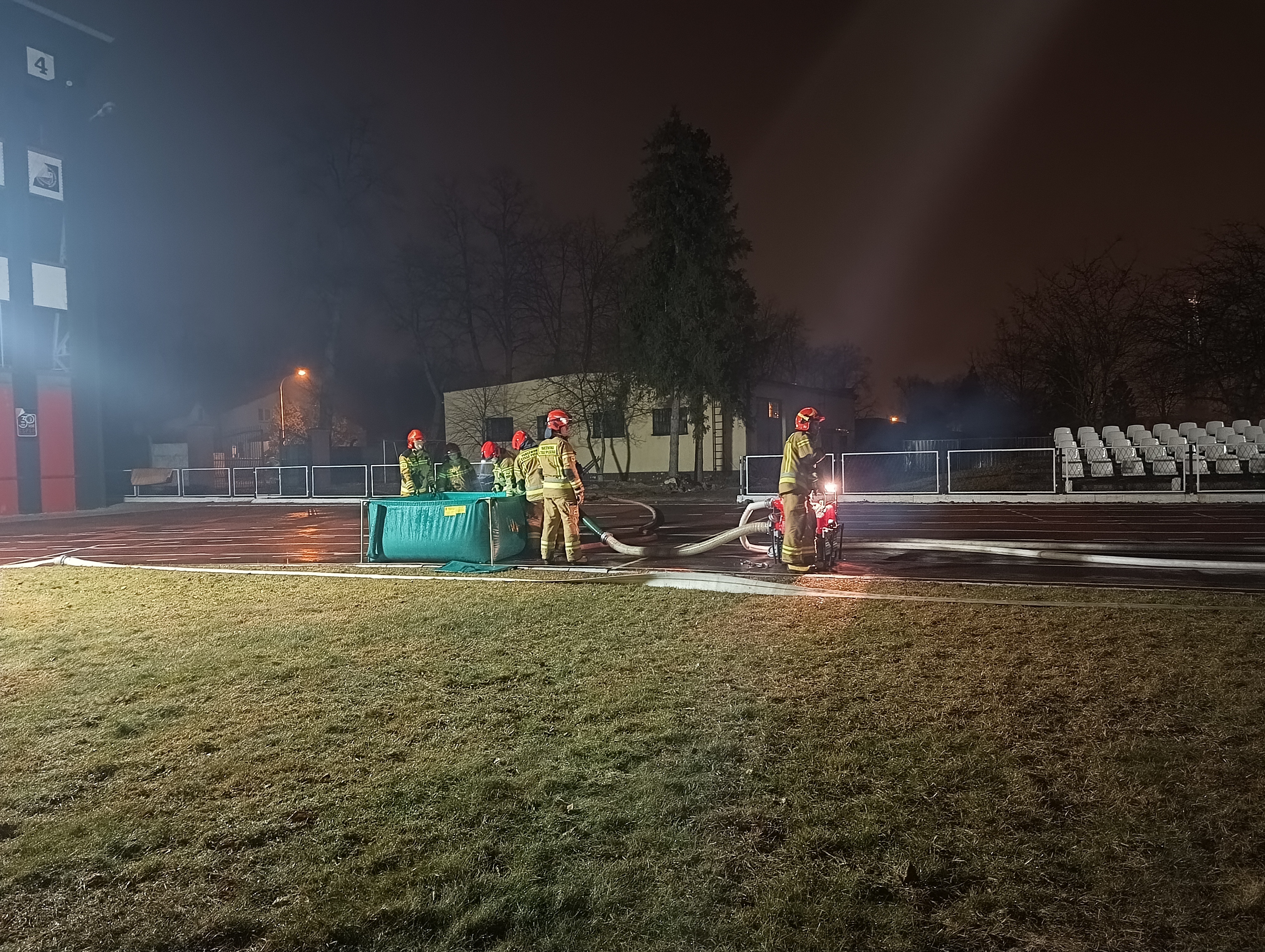 Podczas ćwiczeń wskazano wady i zalety systemów dostarczania wody. Słuchacze wykonywali zadania w zakresie dostarczania wody systemem przepompowywania i przetłaczania utrzymując łączność między stanowiskami odbioru i poboru wody oraz szacowali czas wykonania buforu wodnego podczas długotrwałych zdarzeń gaśniczych. Podczas założeń użyto specjalnych masztów oświetleniowych, dzięki którym poprawiono widoczność podczas ćwiczeń. Ćwiczenia odbyły się przy współudziale II zmiany szkolnej jednostki ratowniczo – gaśniczej.