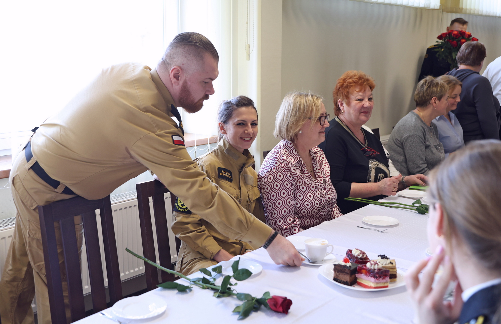 Wszystkie Panie zostały obdarowane kwiatami oraz usłyszały wiele ciepłych słów od obecnych na spotkaniu mężczyzn, którzy podkreślali ważną rolę kobiet w Państwowej Straży Pożarnej.