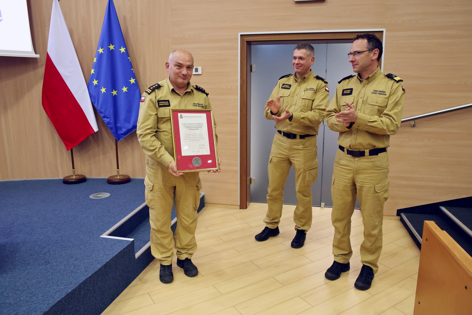 Komendant CS PSP st. bryg. Jarosław Jankowski otrzymał specjalne podziękowania za organizację spotkania SEVESO 2025, a prelegenci za udział w nim.
