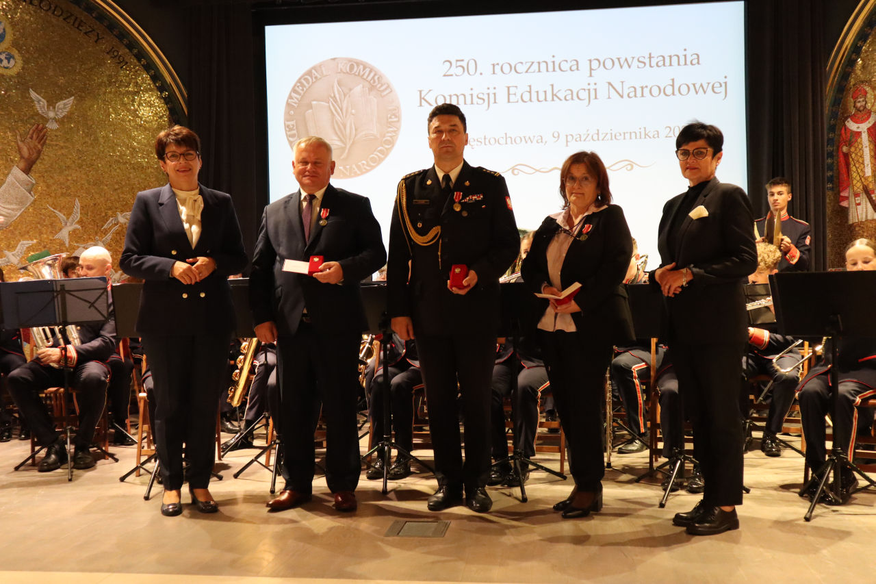 Następnie nastąpiło uroczyste wręczenie Medali Komisji Edukacji Narodowej. Wzięli w nich udział dyrektorzy szkół należących do Delegatury w Częstochowie Kuratorium Oświaty w Katowicach oraz zaproszeni goście w tym Komendant Centralnej Szkoły PSP w Częstochowie st. bryg. Piotr Placek, który został wyróżniony medalem KEN przez Ministra Edukacji i Nauki za szczególne zasługi dla oświaty i wychowania. Medal Komisji Edukacji Narodowej jest zaszczytną najwyższą odznaką za wybitne zasługi dla oświaty i wychowania. Został ustanowiony w 1956 r.