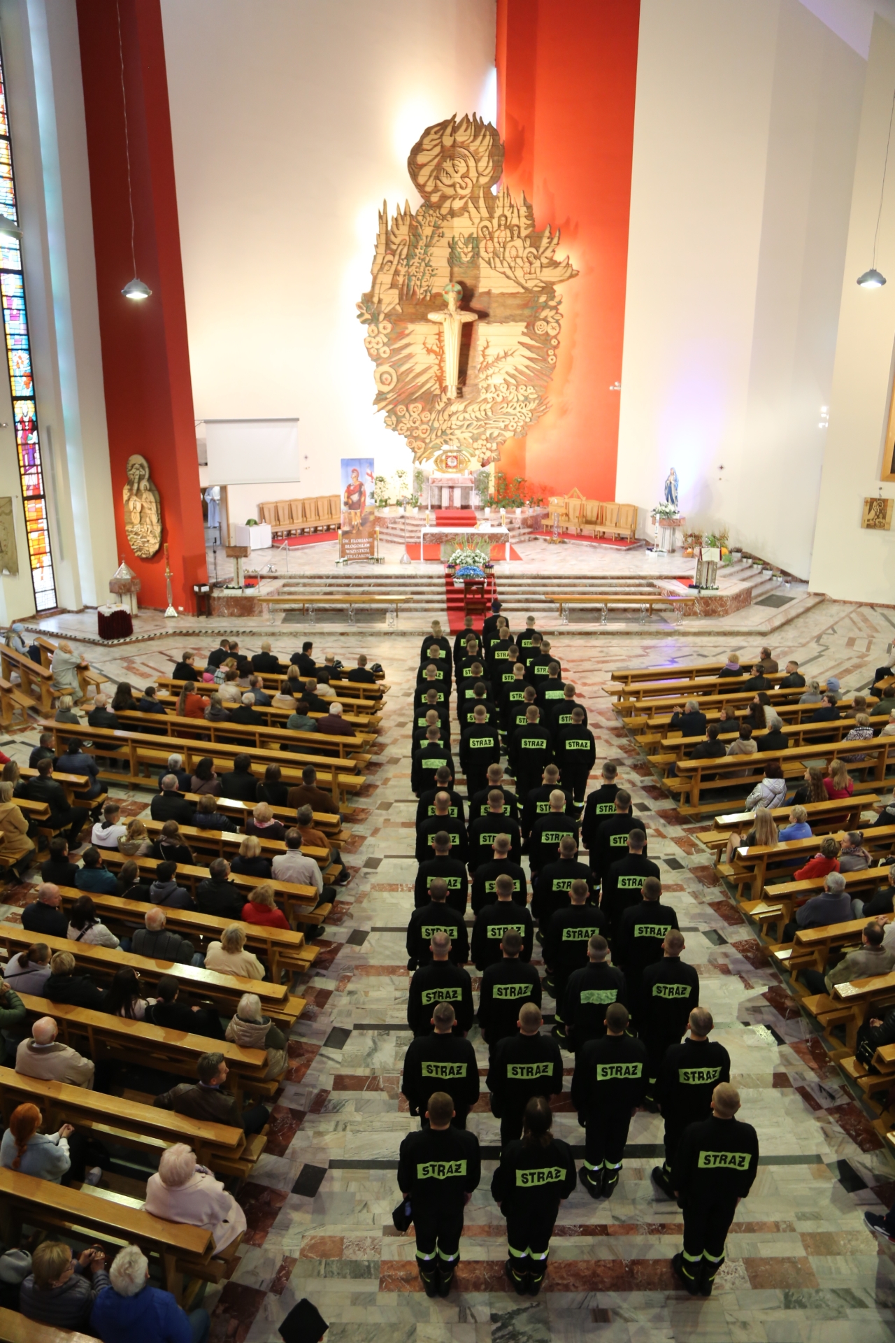 Ten szczególny dzień rozpoczął się od Mszy Świętej koncelebrowanej przez Biskupa Andrzeja Przybylskiego oraz ks. Adama Jarząbka - Proboszcza, Przełożonego Wspólnoty Zakonnej, w Kościele pw. Najświętszego Serca Pana Jezusa przy ul. Kościelnej. Po Mszy Świętej księża wraz z komendantami CS PSP spotkali się z obsadą Szkolnej Jednostki Ratowniczo-Gaśniczej CS PSP w Częstochowie.