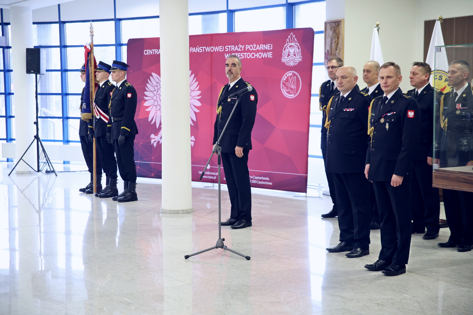 Na wstępie dowódca uroczystości st. bryg. Marek Grabałowski złożył meldunek Komendantowi Centralnej Szkoły PSP w Częstochowie, odśpiewano hymn Polski, a następnie przystąpiono do wręczania odznaczeń i awansów.
