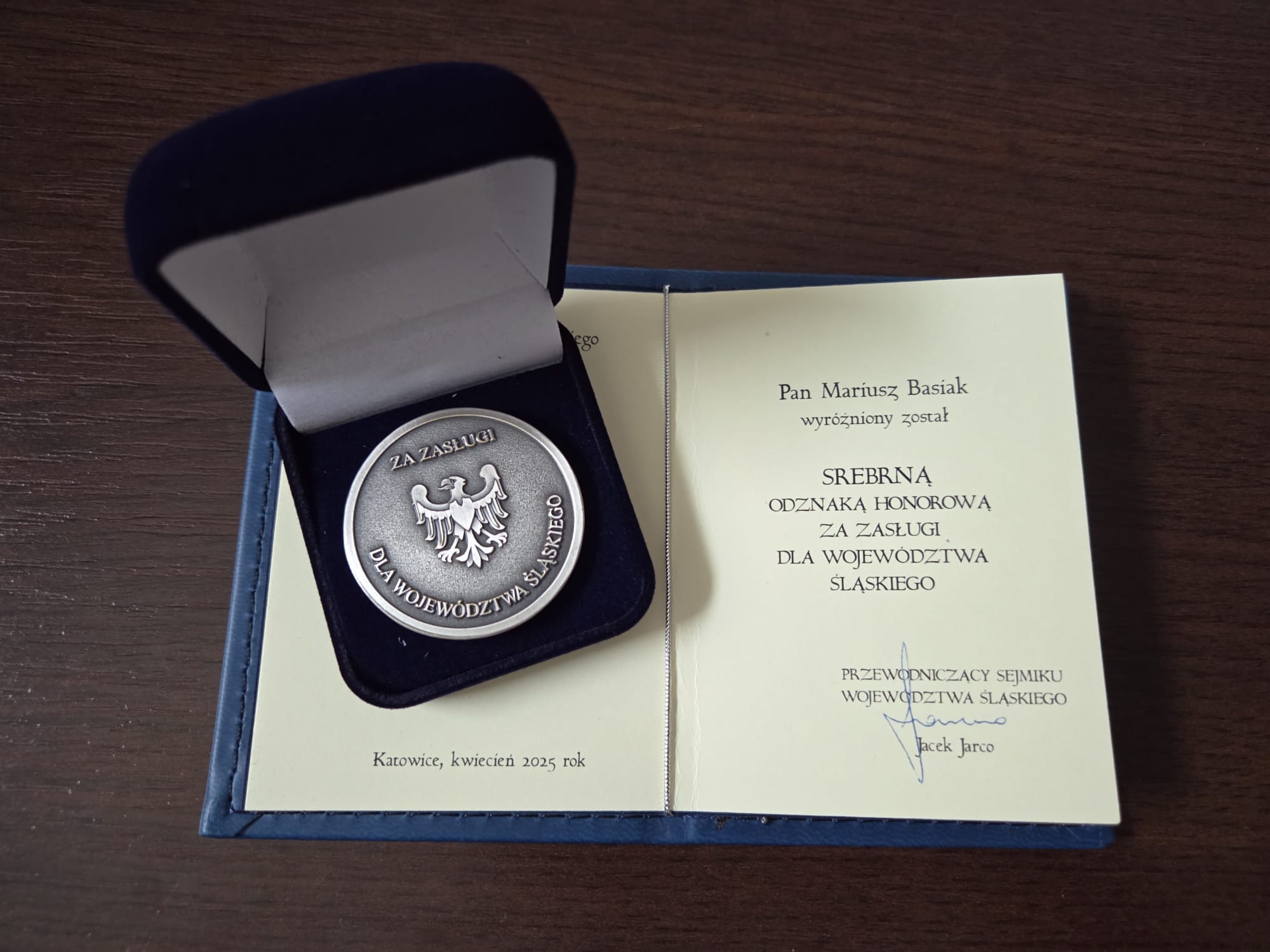 Wczoraj nasz kolega, st. kpt. Mariusz Basiak, został uhonorowany Srebrną Odznaką Honorową "Za Zasługi dla Województwa Śląskiego".