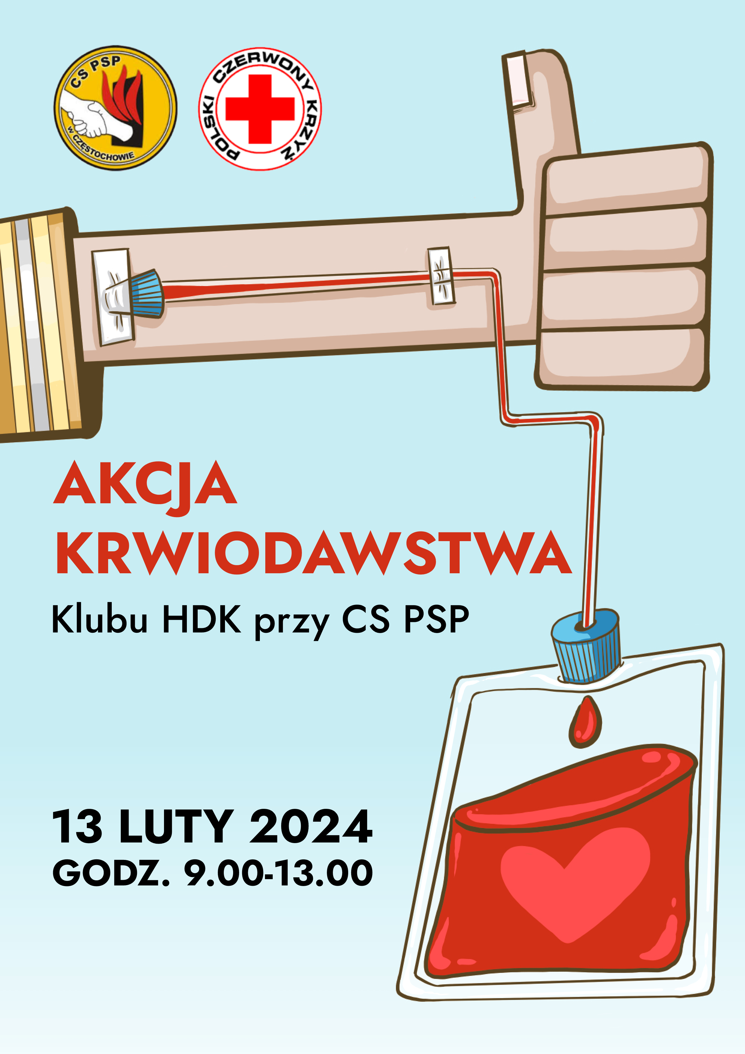 W dniu 13.02.2024 r. Szkolny Klub HDK/PCK przy Centralnej Szkole PSP we współpracy z Regionalnym Centrum Krwiodawstwa i Krwiolecznictwa w Katowicach zorganizował pierwszą w tym roku akcję honorowego oddawania krwi.