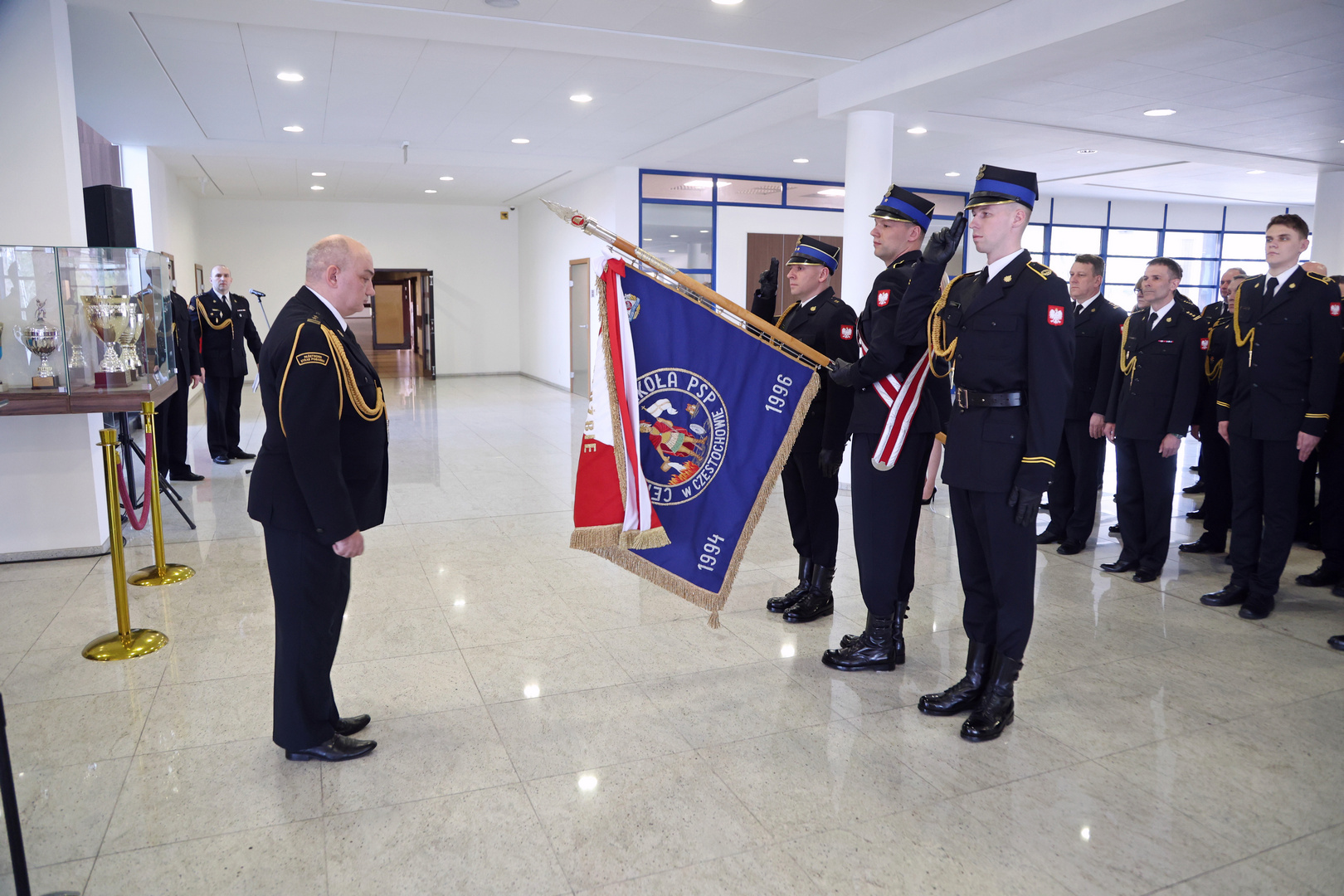 Podczas uroczystej zbiórki z udziałem kadry szkoły, kadetów, słuchaczy oraz zaproszonych gości, nadbryg. dr inż. Mariusz Feltynowski, komendant główny Państwowej Straży Pożarnej wręczył decyzję personalną oraz przyjął meldunek od bryg. Jarosława Jankowskiego o objęciu z dniem 4 kwietnia 2024 r. obowiązków komendanta Centralnej Szkoły Państwowej Straży Pożarnej w Częstochowie.