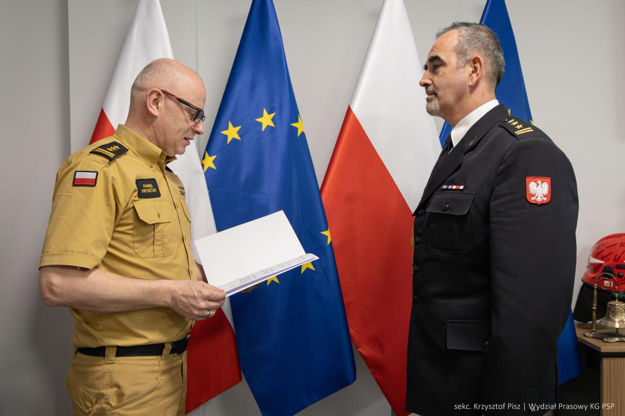 Decyzję personalną wręczył zastępca komendanta głównego PSP st. bryg. mgr inż. Paweł Frysztak, w obecności Komendanta Centralnej Szkoły Państwowej Straży Pożarnej w Częstochowie, st. bryg. mgr inż. Jarosława Jankowskiego.
