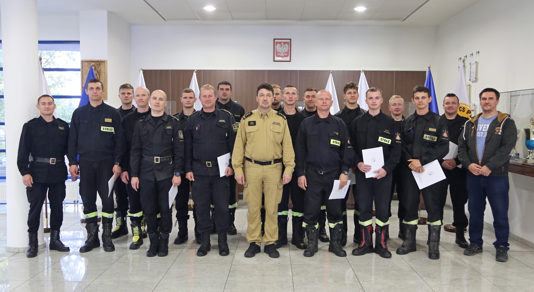 Na zakończenie Komendant Centralnej Szkoły st. bryg. Piotr Placek wręczył uczestnikom szkolenia stosowne zaświadczenia. W uroczystym zakończeniu szkolenia udział wzięli również: Zastępca Naczelnika Wydziału Szkoleń Specjalistycznych i Współpracy Międzynarodowej mł. bryg. Arkadiusz Omazda, kierownik szkolenia mł. kpt. Adrian Barasiński oraz wykładowca zewnętrzny, pracownik Pogotowia Elektrycznego Pan Krzysztof Mrozek.