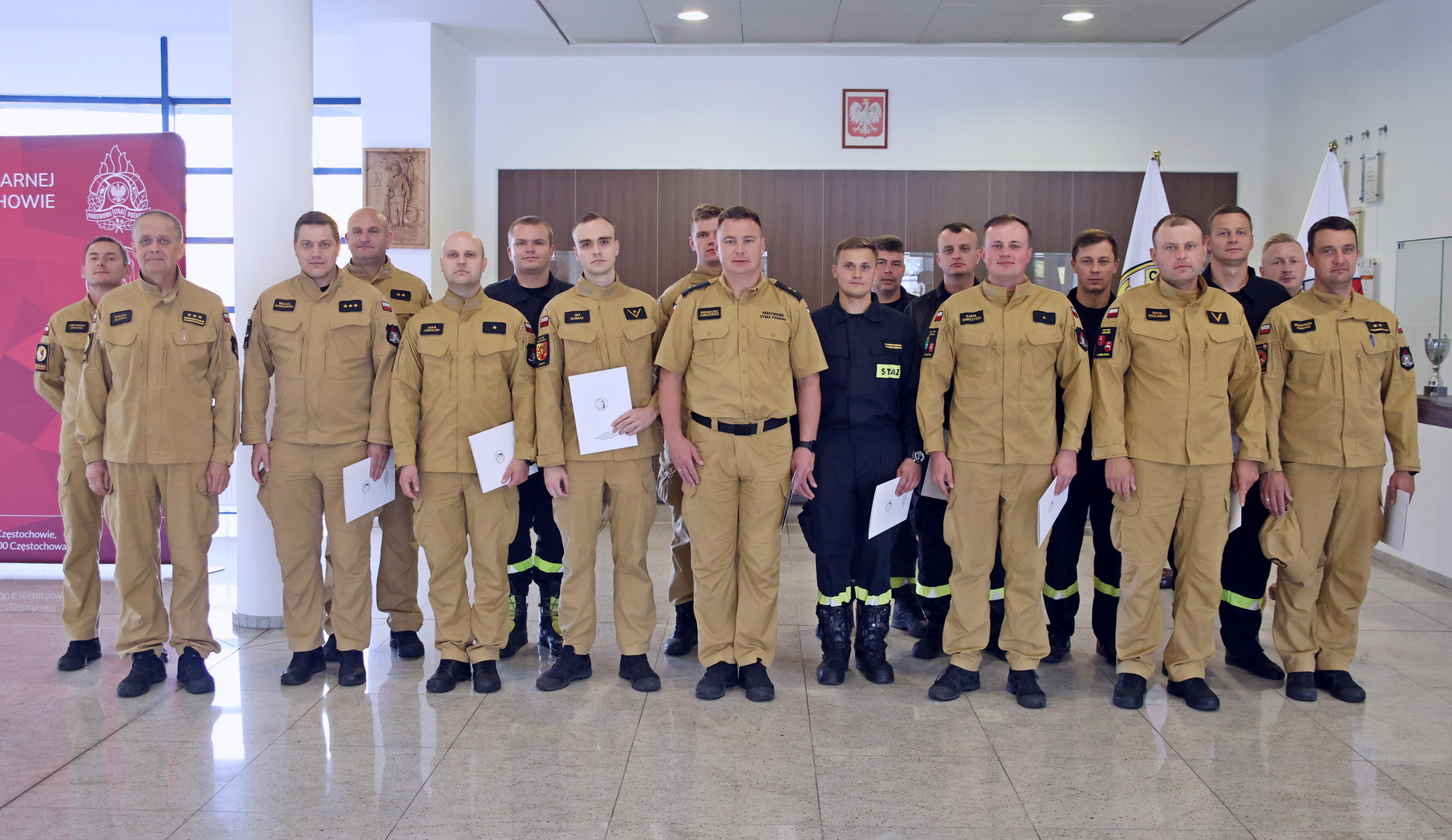 Na zakończenie Naczelnik Wydziału Szkoleń Specjalistycznych st. bryg. Bogumił Zalewski wręczył uczestnikom szkolenia stosowne zaświadczenia. W uroczystym zakończeniu szkolenia udział wziął również kierownik szkolenia kpt. Adrian Barasiński oraz Zastępca Naczelnika Wydziału Szkoleń Specjalistycznych mł. bryg. Arkadiusz Omazda.