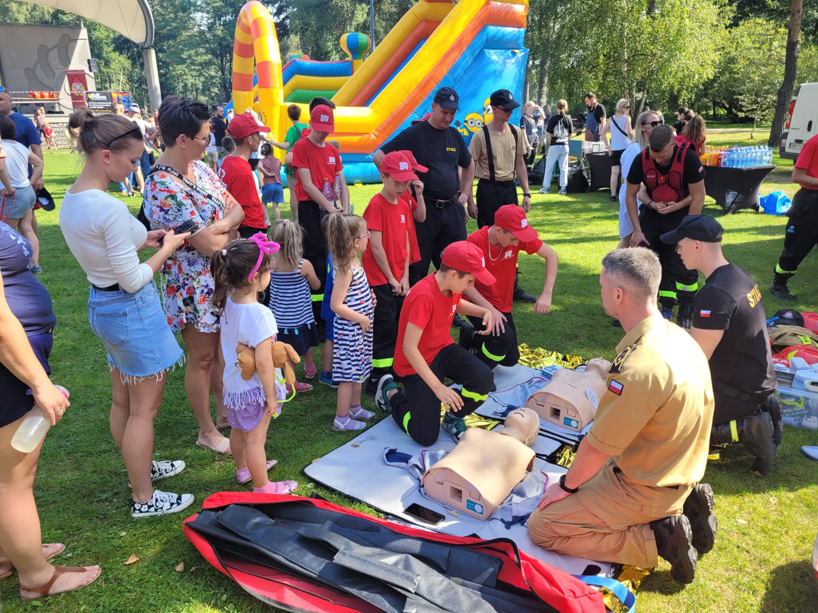 Kadra Centralnej Szkoły PSP z Częstochowy reprezentowana przez st. kpt. Mariusza Basiaka oraz mł. asp. Bartosza Jędruszka zorganizowała pokazy z zakresu ratownictwa medycznego, podczas których uczestnicy mogli spróbować swoich sił prowadząc RKO czy pomagając osobie, która się zakrztusiła.