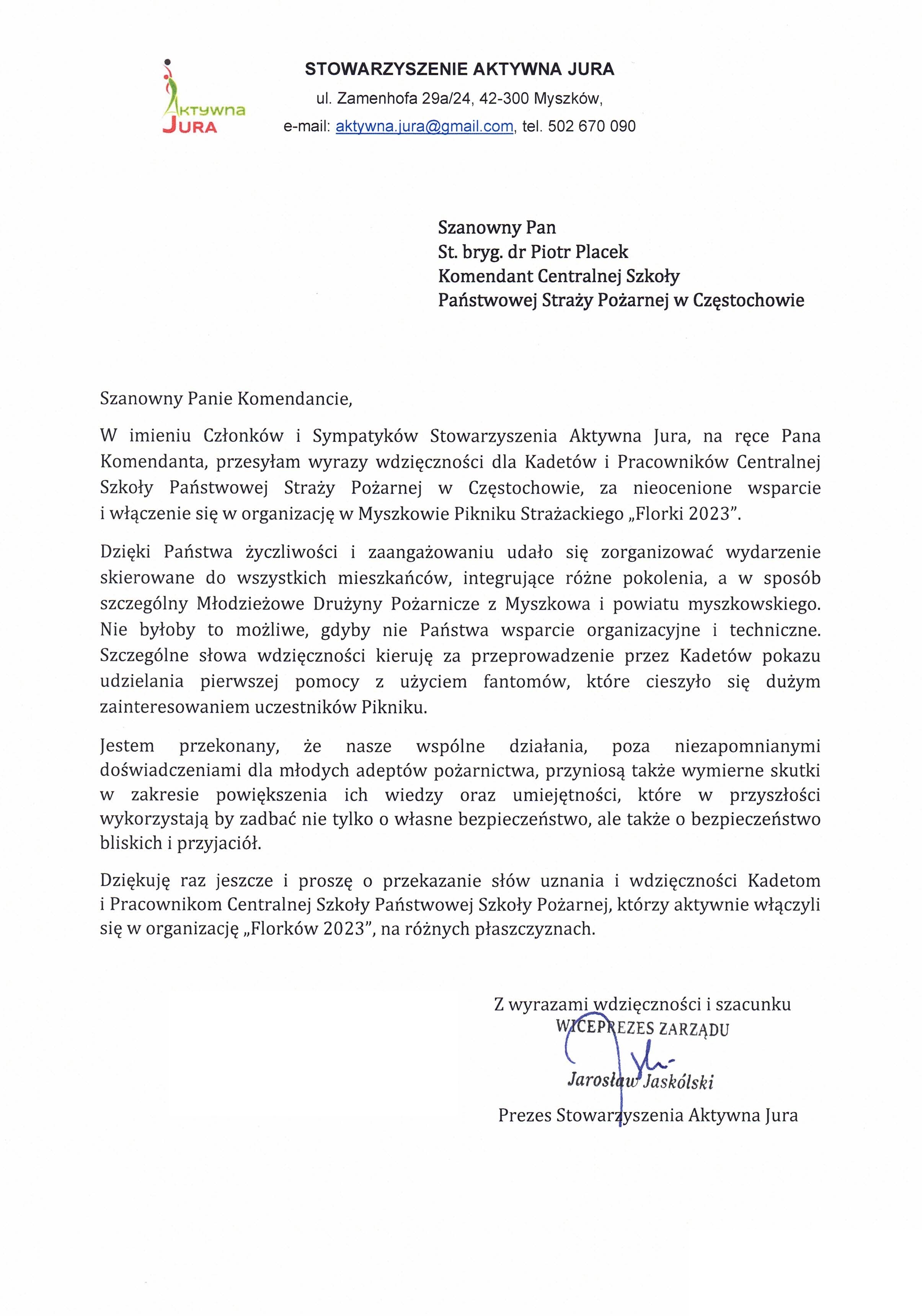 "Florki 2023" zostały zorganizowane przez Stowarzyszenie "Aktywna Jura" oraz Komendę Powiatową Państwowej Straży Pożarnej w Myszkowie przy wsparciu władz Powiatu Myszkowskiego. W tak szczególnym wydarzeniu, udział wzięła również Pani Jadwiga Wiśniewska - Poseł do Parlamentu Europejskiego. Pani poseł swoja postawą, dała przykład wszystkim obecnym, że warto ćwiczyć i przypominać sobie zasady pomocy przedmedycznej, mogącej uratować życie bliźniemu.