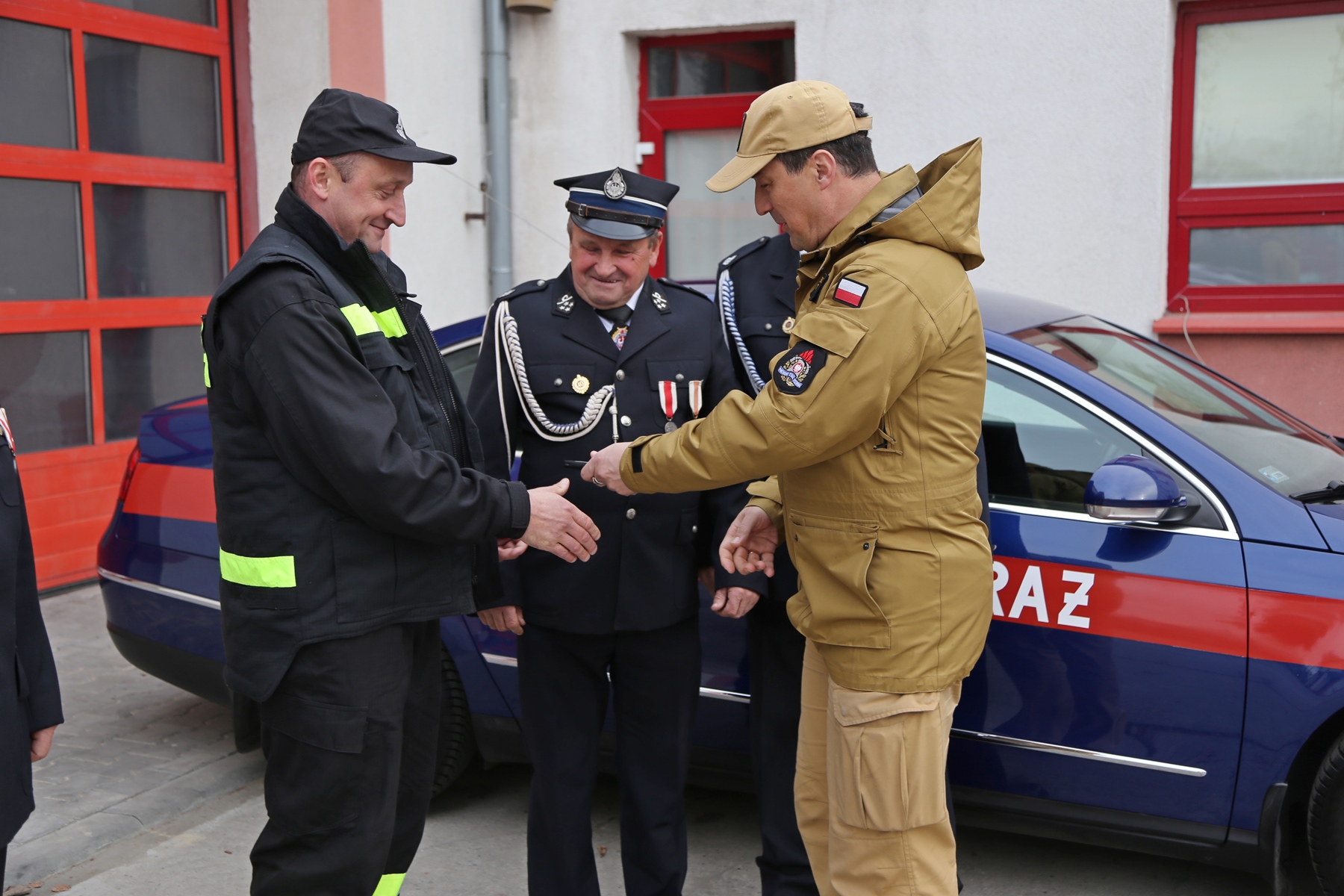 Przekazanie lekkiego samochodu operacyjnego z Centralnej Szkoły PSP w Częstochowie do Ochotniczej Straży Pożarnej w Trzebniowie