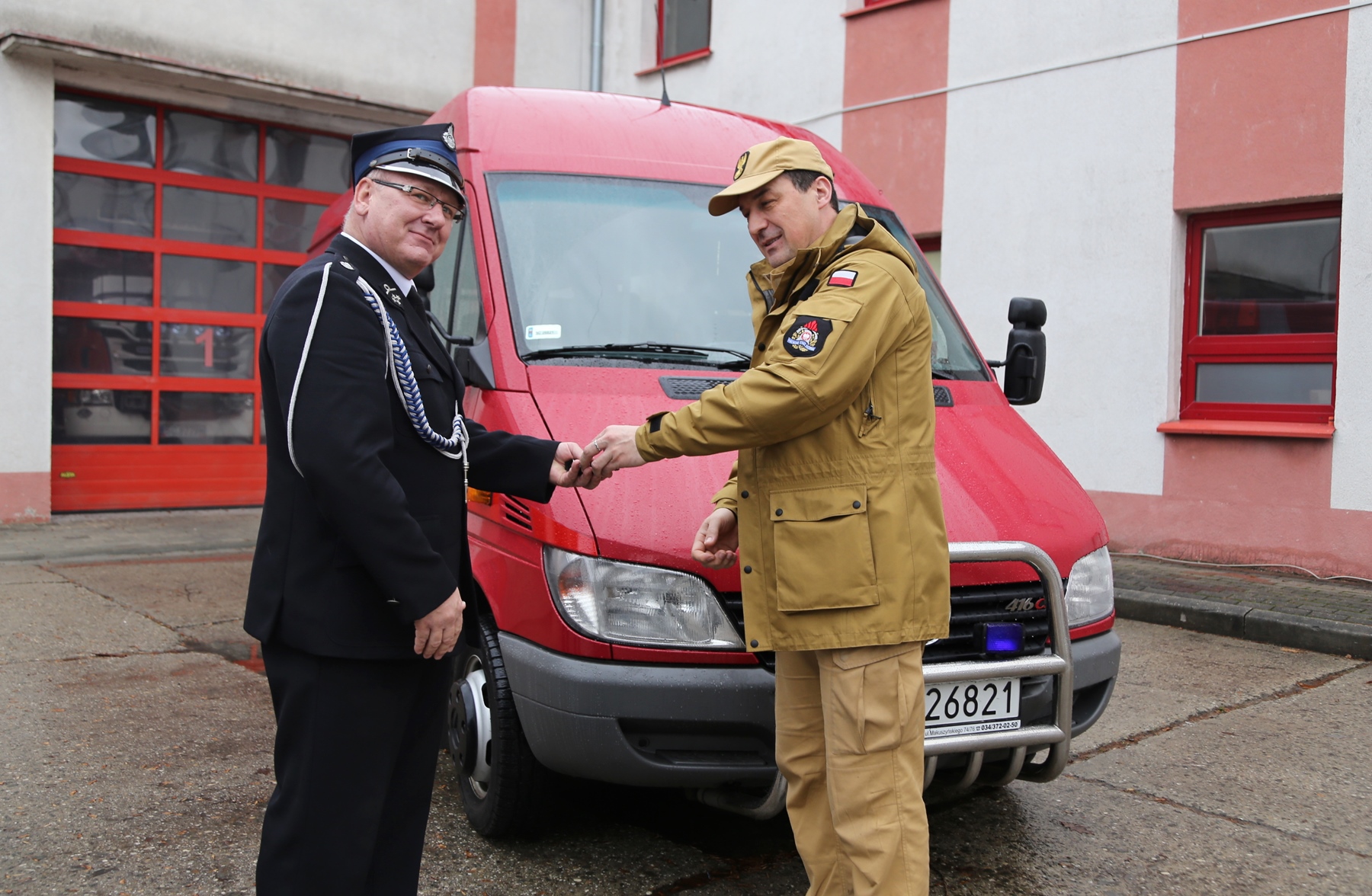 Na podstawie art. 31 ustawy z dnia 24 sierpnia 1991 r. o ochronie przeciwpożarowej oraz §33 ust.1 i §35 ust.3i §36 „Zarządzenia nr 1 Komendanta Głównego PSP z dnia 24 stycznia 2020 r. w sprawie gospodarki transportowej w jednostkach organizacyjnych PSP" w dniu 9 stycznia 2023 roku, dokonano przekazania do Ochotniczej Straży Pożarnej Koziegłowy - Rosochacz, samochodu operacyjnego marki Mercedes Sprinter.