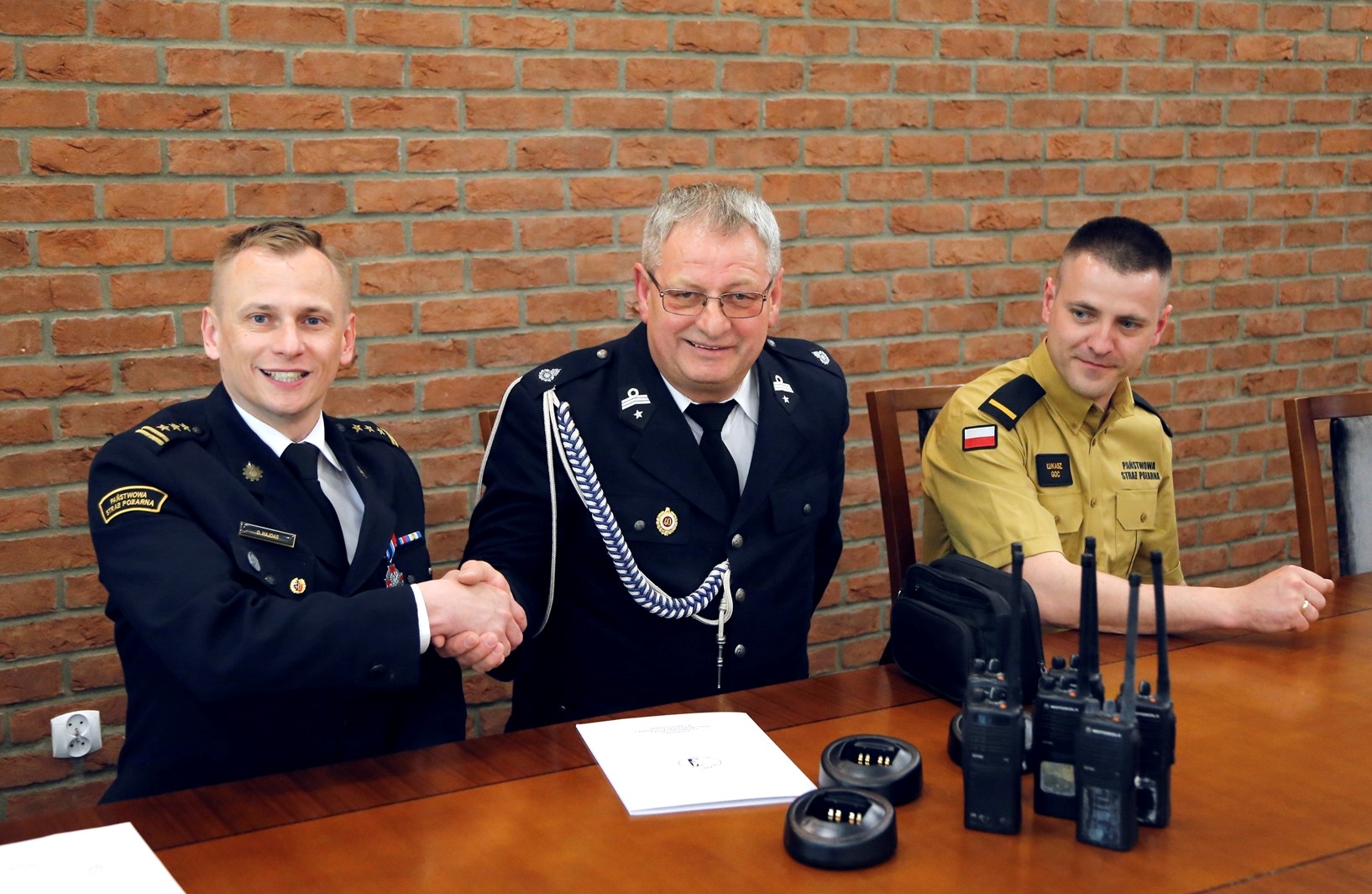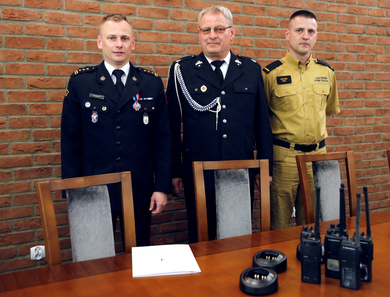 W oficjalnym przekazaniu udział wzięli: st. bryg. Damian Hajdas - Zastępca Komendanta Centralnej Szkoły PSP w Częstochowie, st. str. Łukasz Goc - funkcjonariusz Wydziału Informatyki i Łączności oraz druh Krzysztof Kotas – Prezes OSP Bojszowy Nowe.