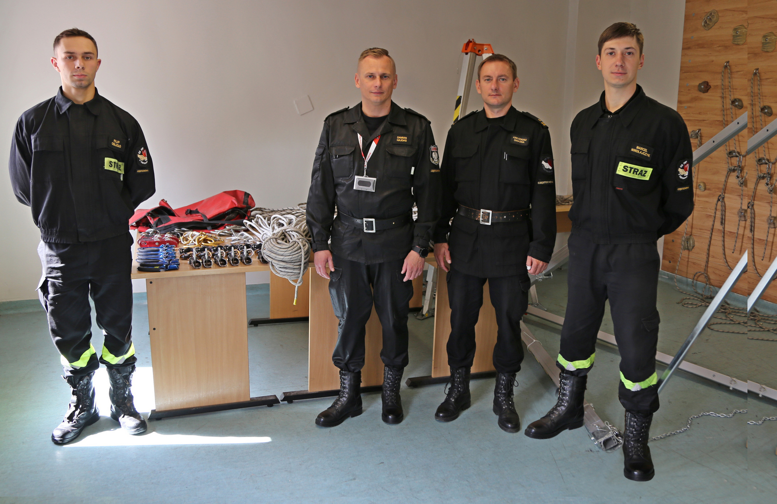 Przekazania sprzętu dokonał Zastępca Komendanta Centralnej Szkoły PSP w Częstochowie bryg. Damian Hajdas w obecności kierownika szkolnej sekcji ratownictwa wysokościowego mł. bryg. Arkadiusza Omazdy.