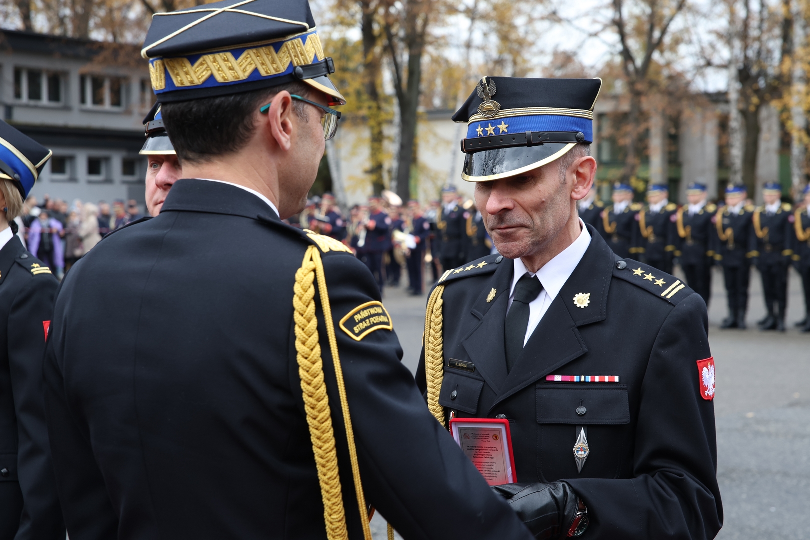 Aktu Wręczenia Odznaczeń dokonali: Komendant Główny Państwowej Straży Pożarnej nadbryg. Wojciech Kruczek oraz Komendant CS PSP st. bryg. Jarosław Jankowski.