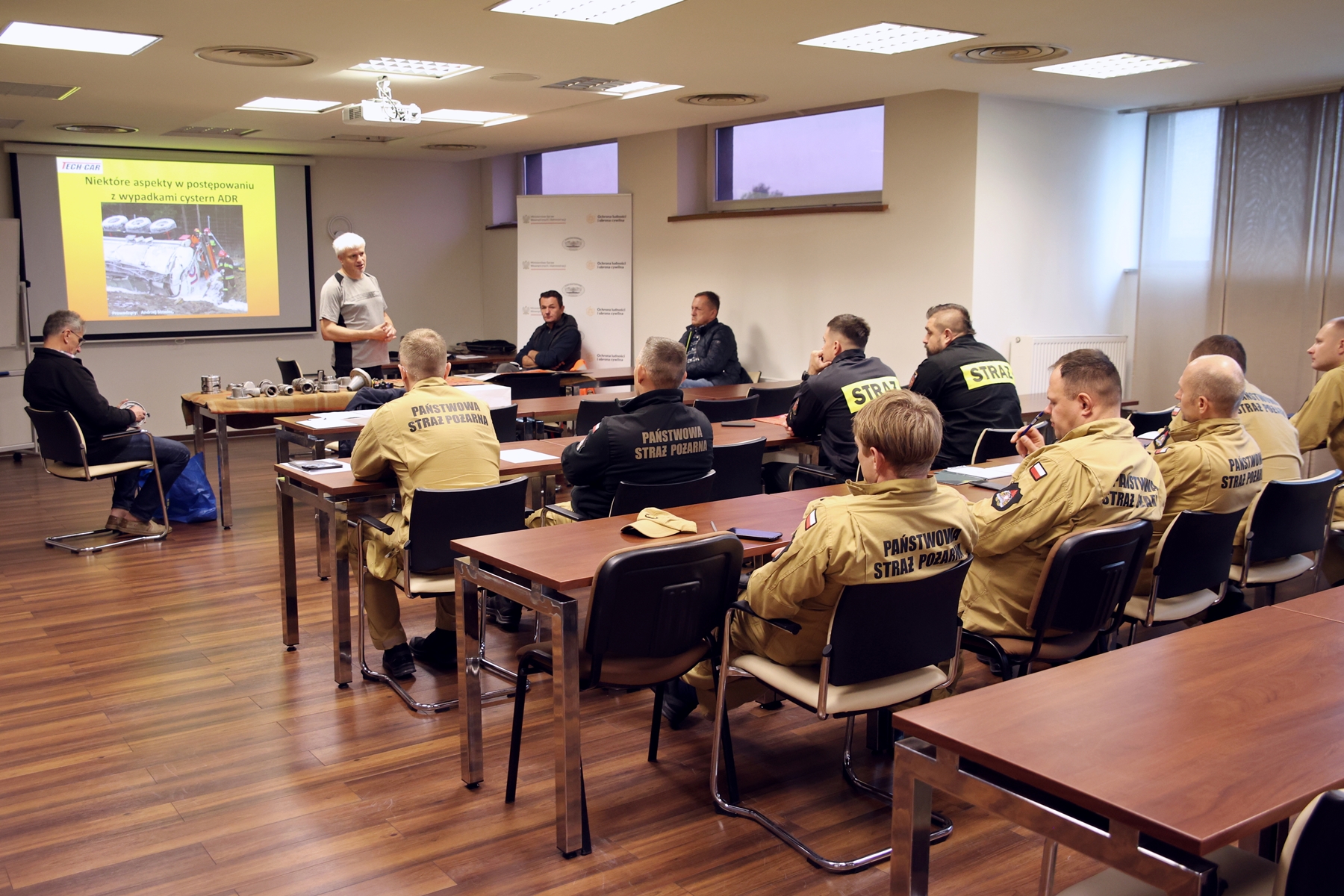 Szkolenie zostało przeprowadzone na podstawie programu zatwierdzonego przez Komendanta Głównego Państwowej Straży Pożarnej w dniu 28 października 2024 roku. Jego celem było przygotowanie uczestników do skutecznego i bezpiecznego prowadzenia działań ratowniczych w ramach ratownictwa chemicznego i ekologicznego, w szczególności podczas zdarzeń z udziałem cystern przewożących materiały niebezpieczne. Zajęcia praktyczne realizowano na szkolnym poligonie, gdzie uczestnicy - z wykorzystaniem modeli różnych typów cystern do przewozu towarów niebezpiecznych - wykonywali zadania związane z ich awaryjnym rozładunkiem. Integralną część szkolenia stanowiła także prezentacja jednostek transportowych przeznaczonych do przewozu gazów LPG i LNG oraz wodoru.