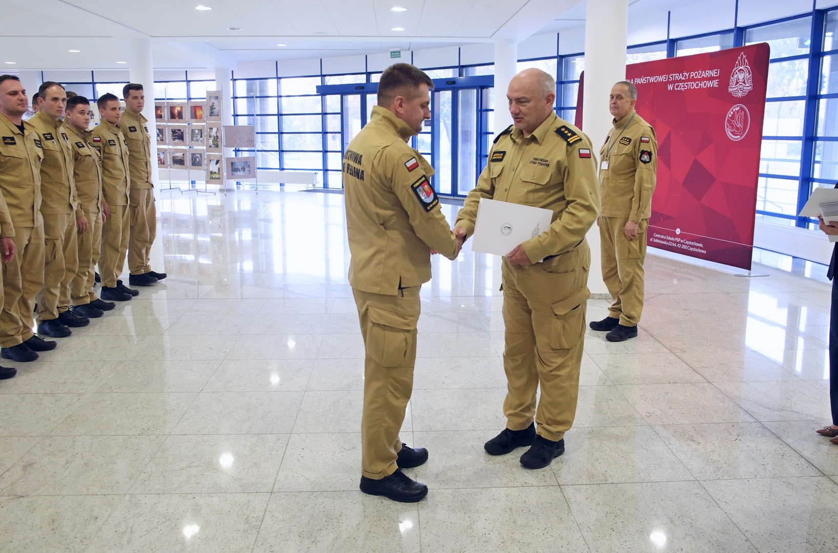 Zaświadczenia potwierdzające odbycie przedmiotowego szkolenia uczestnikom wręczył Komendant Centralnej Szkoły Państwowej Straży Pożarnej st. bryg. Jarosław Jankowski w obecności Naczelnika Wydziału Szkoleń Specjalistycznych i Współpracy Międzynarodowej st. bryg. Bogumiła Zalewskiego.