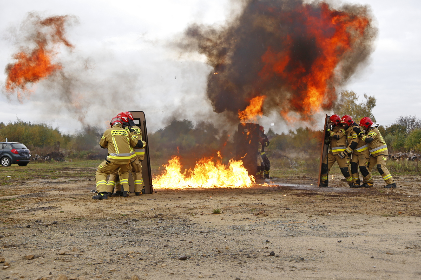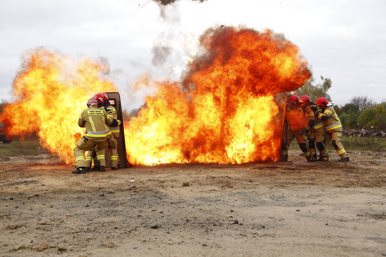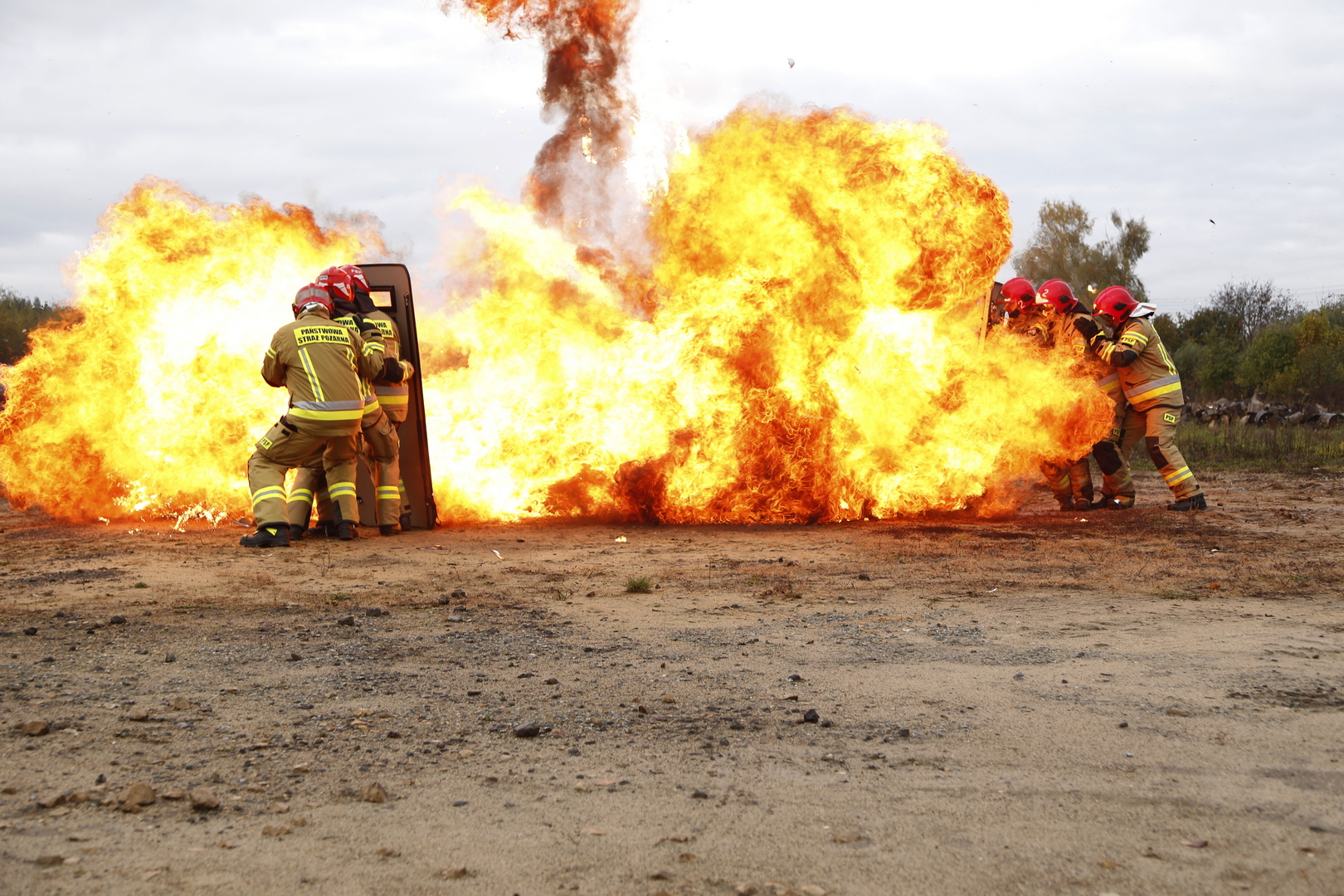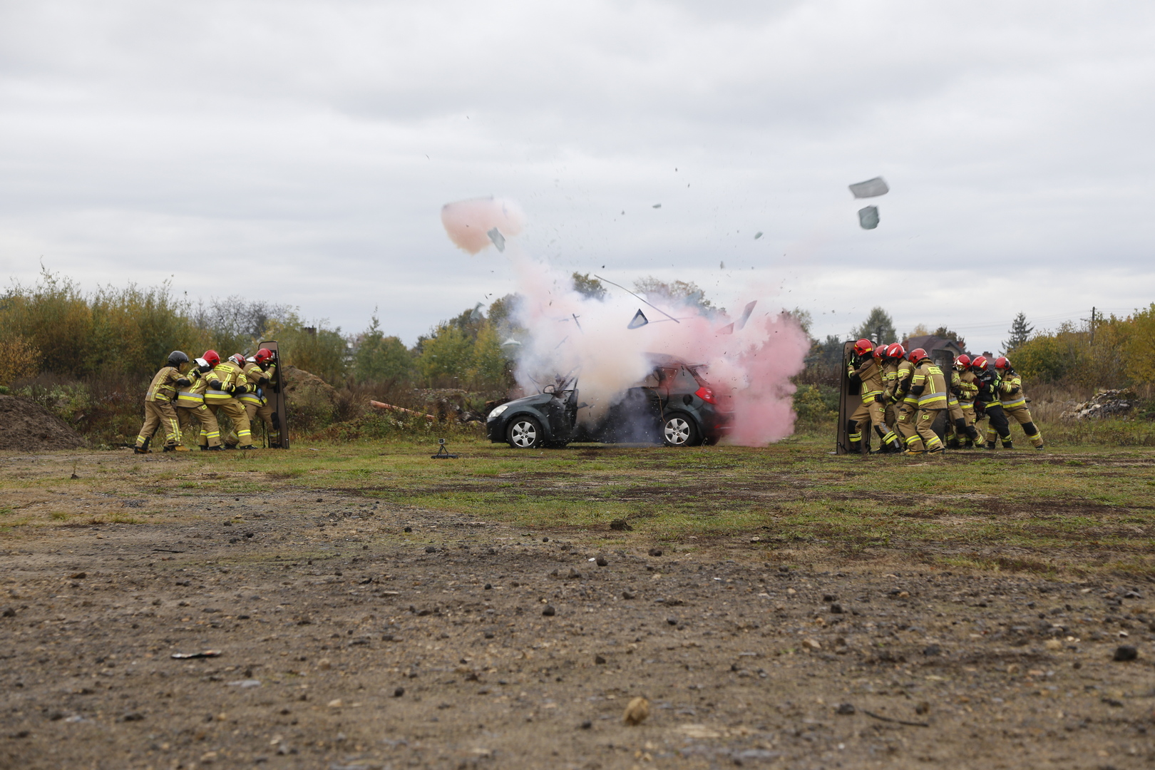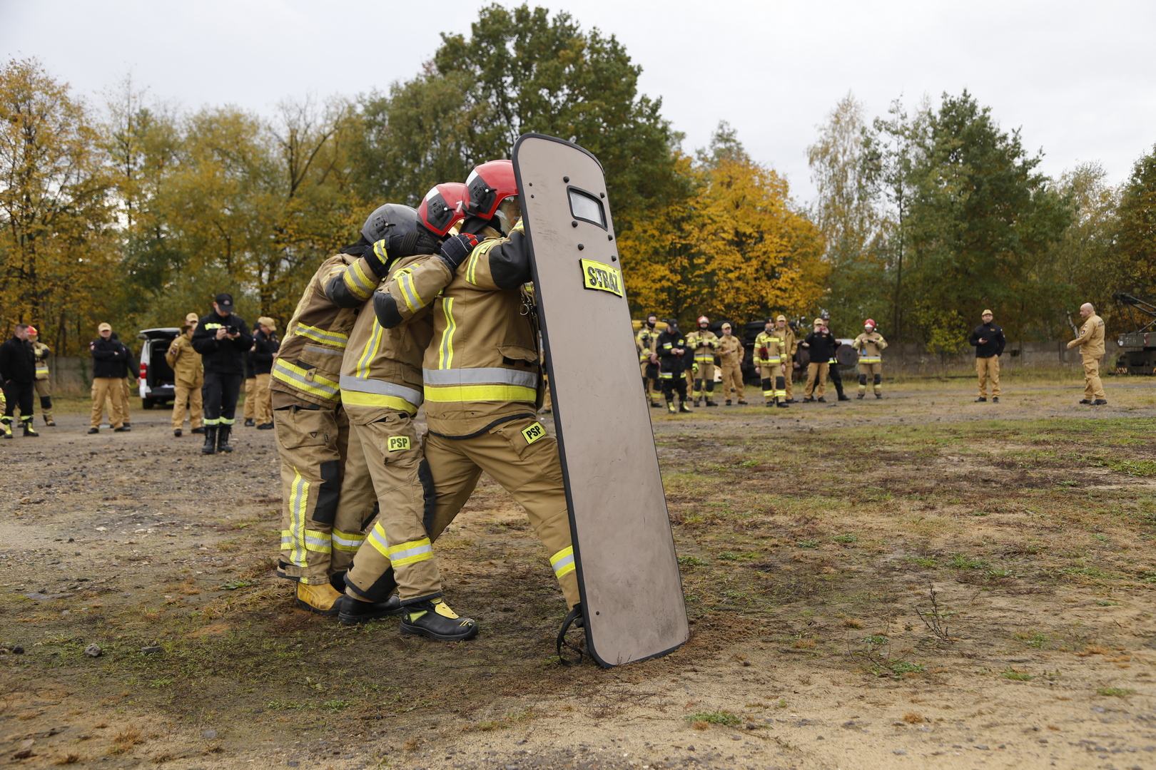 Przedmiotowe spotkanie było również okazją do zapoznania uczestników z zasadami użytkowania i zastosowania tarcz balistycznych w działaniach ratowniczych. W tym aspekcie na terenie poligonu szkolnego Centralnej Szkoły PSP odbyły się zajęcia praktyczne, w trakcie których zaprezentowano walory taktyczno-użytkowe tarcz balistycznych oraz możliwości zabezpieczenia strażaków przed skutkami wybuchów.