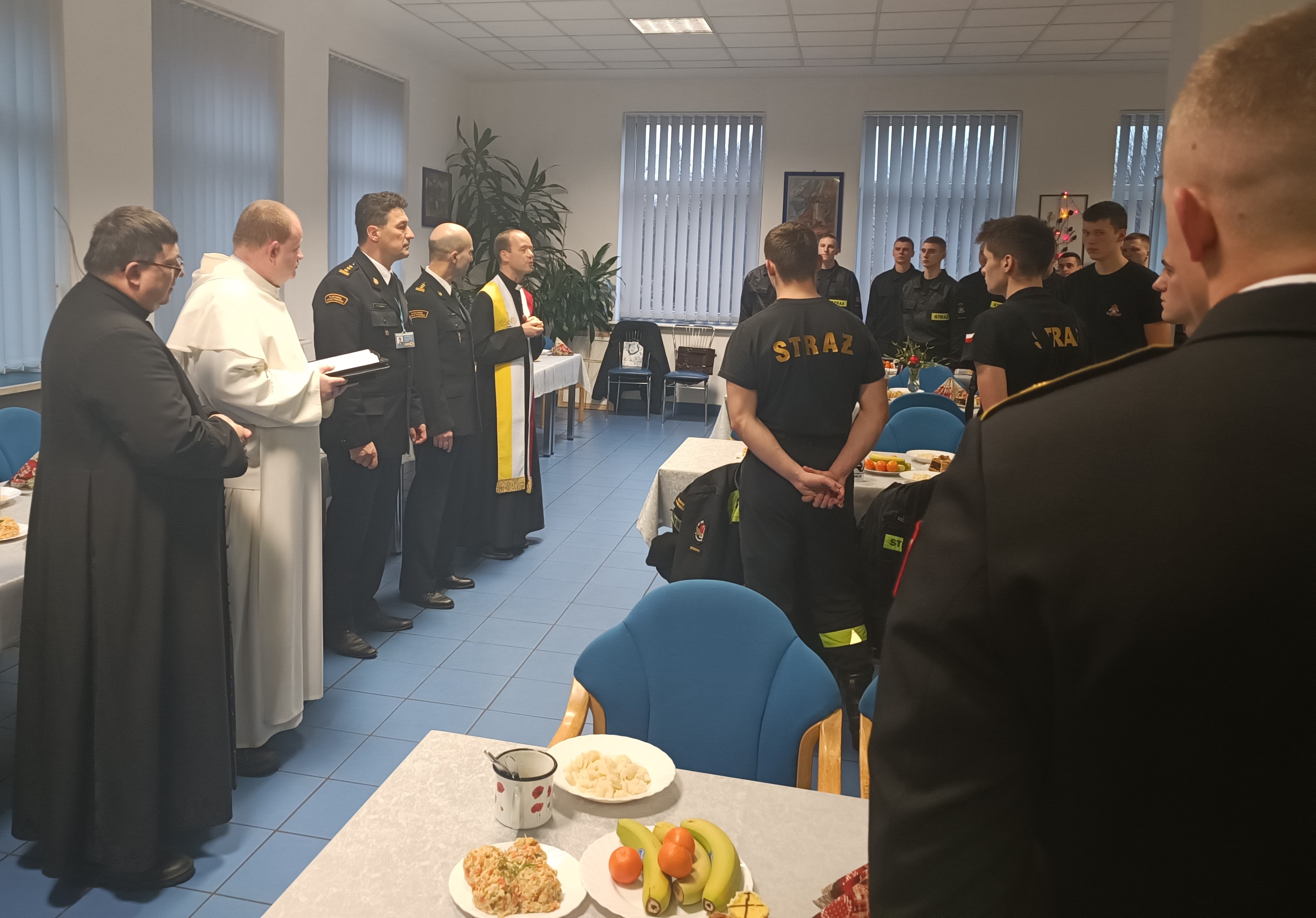 Tradycyjnie, jak co roku w Centralnej Szkole PSP w Częstochowie, 24 grudnia odbyło się spotkanie opłatkowe z kadetami kompanii I i II Dziennego Studium Aspirantów PSP oraz z uczestnikami szkolenia podstawowego w zawodzie strażak (kompanii III).