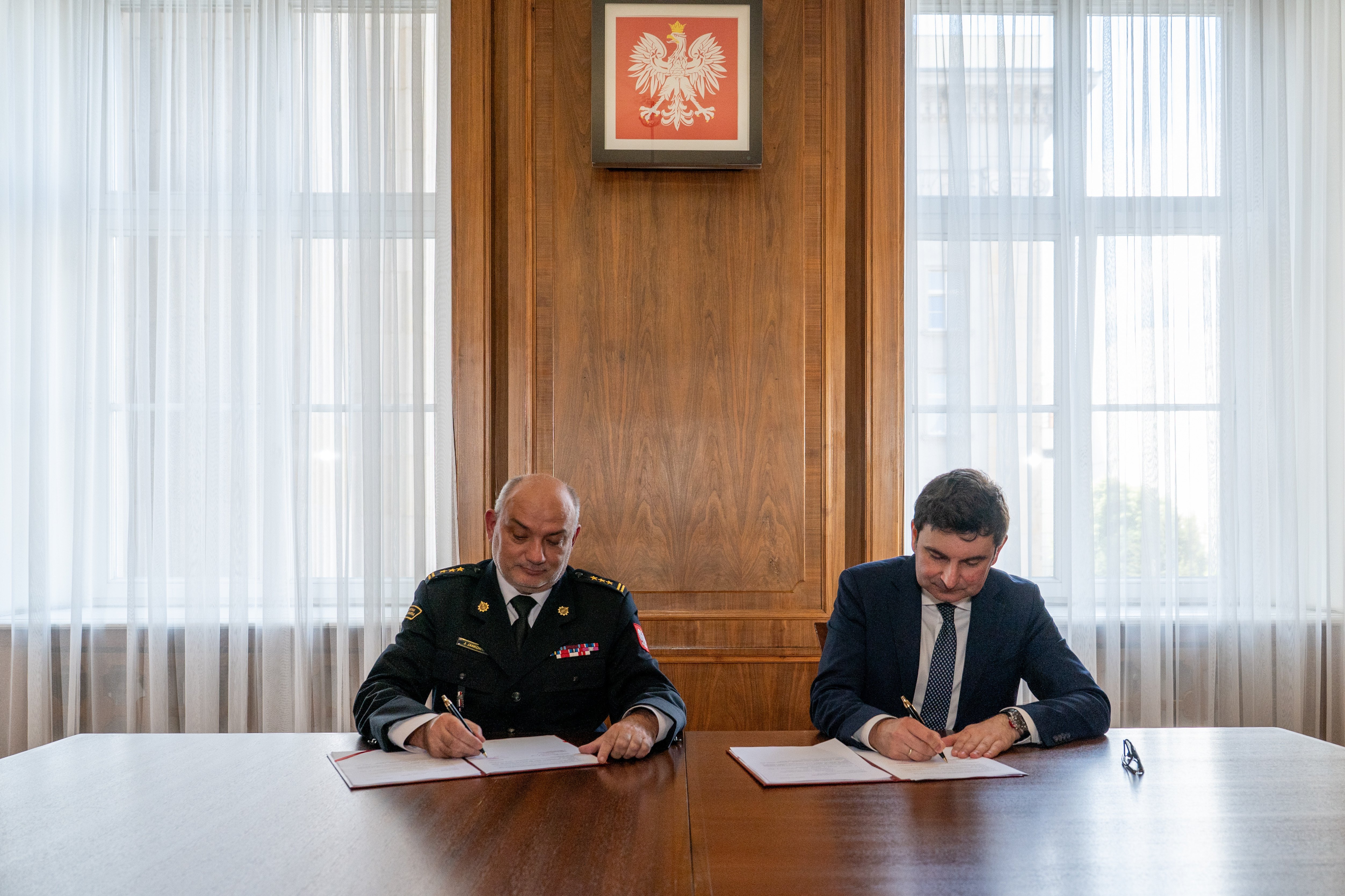 Wójtowie, burmistrzowie oraz prezydenci miast z województwa śląskiego zostaną przeszkoleni w zakresie ochrony ludności i obrony cywilnej na mocy umowy podpisanej 21.05.2025 roku przez Wojewodę Śląskiego Marka Wójcika oraz Komendanta Centralnej Szkoły Państwowej Straży Pożarnej w Częstochowie st. bryg. mgr inż. Jarosława Jankowskiego.