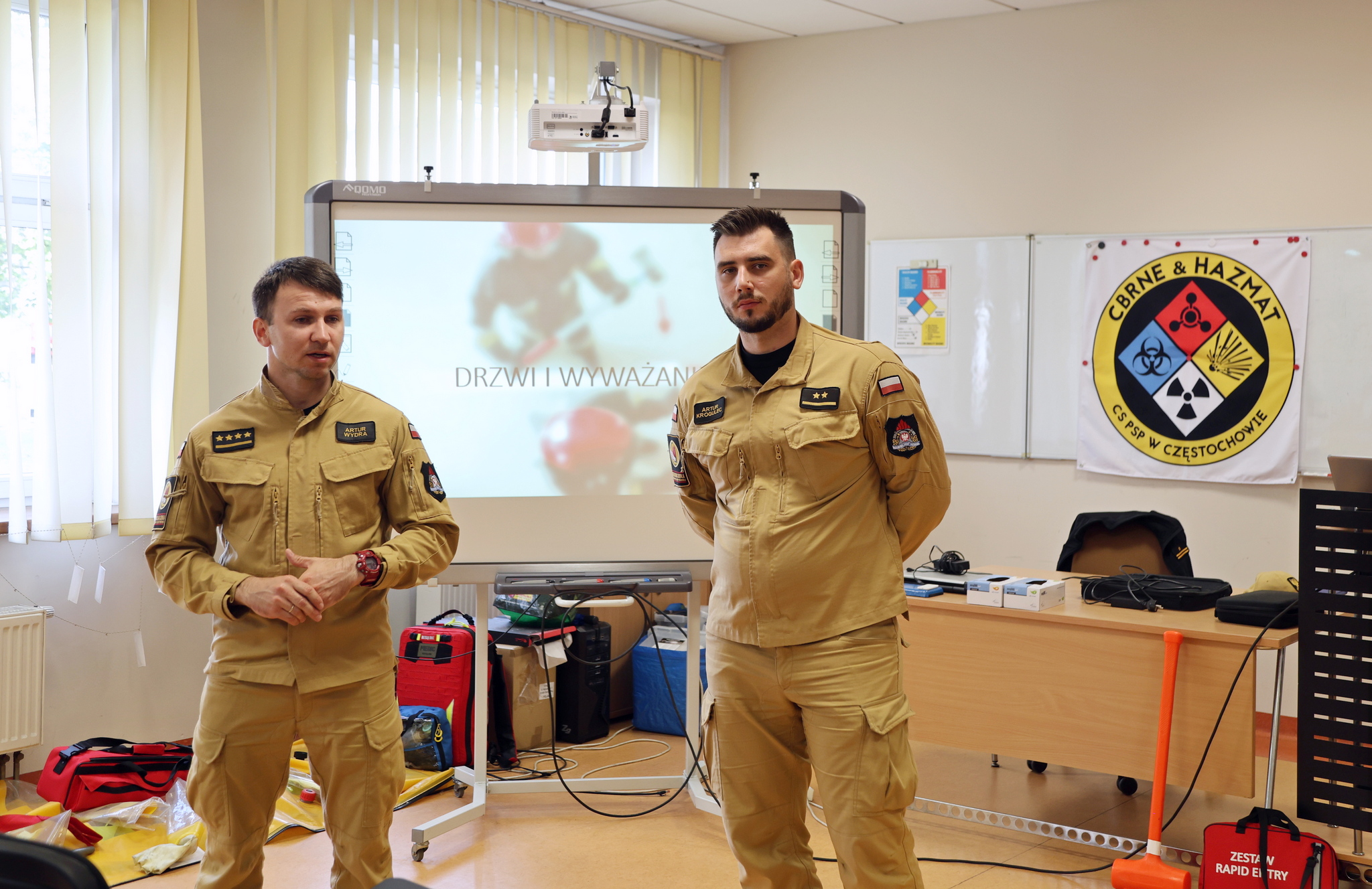 W dniu 27 września 2024 r. na terenie Centralnej Szkoły PSP w Częstochowie odbyło się szkolenie dla funkcjonariuszy Komendy Wojewódzkiej Policji w Katowicach dotyczące "Forsowania przeszkód budowlanych".